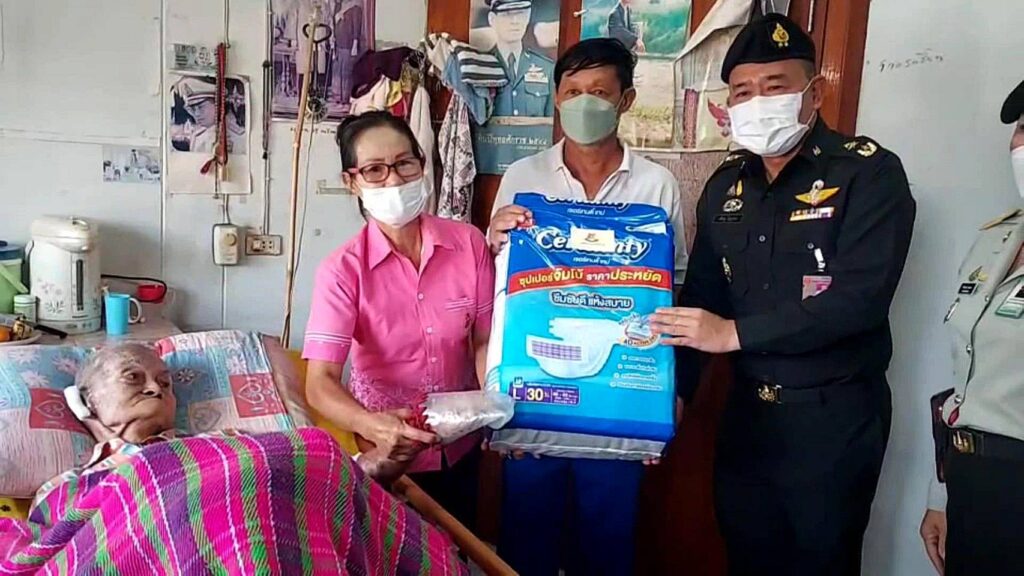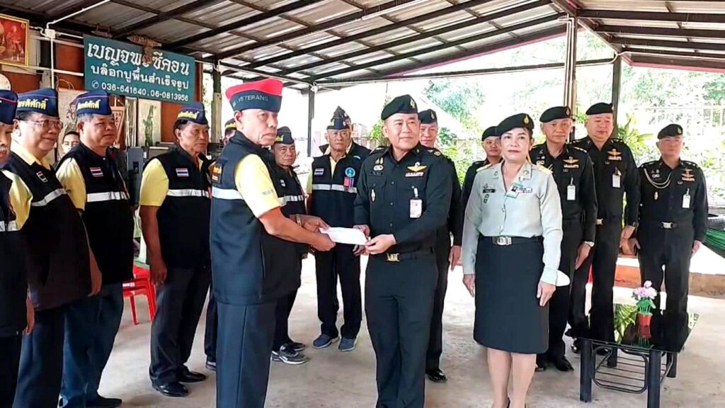 พลตรี พิศิษฐ ปัญญานะ ผู้บัญชาการศูนย์การทหารปืนใหญ่ ค่ายภูมิพลฯ จังหวัดลพบุรี พร้อมด้วย นางจิราภรณ์ อ่อนตา ผู้ช่วยหัวหน้าสำนักงานสงเคราะห์ทหารผ่านศึก เขตลพบุรี และคณะเครือข่ายทหารผ่านศึกตำบลเขาพระงาม ได้เดินทางลงพื้นที่เยี่ยมเยียน พร้อมมอบสิ่งของเครื่องอุปโภค พร้อมเงินบำรุงขวัญ เพื่อเป็นขวัญและกำลังใจให้แก่ ทหารผ่านศึกนอกประจำการ ในพื้นที่ อ.เมือง จ.ลพบุรี จำนวน 2 ราย ประกอบด้วย รายที่ 1 ร้อยตรี คำภู แก้วแสงทอง อายุ 91 ปี ทหารผ่านศึกนอกประจำการ บัตรชั้นที่ 3 เลขที่ 0037014/37 ซึ่งเป็นผู้ป่วยติดเตียง อยู่ในการดูแลของครอบครัว ณ บ้านเลขที่ 6/1 หมู่ที่ 4 ต.เขาพระงาม อ.เมือง จ.ลพบุรี และ รายที่ 2 คือ ร้อยเอก สมยศ สังเกตุ อายุ 68 ปี ทหารผ่านศึกนอกประจำการ บัตรชั้นที่ 1 เลขที่ 0002354/26 ซึ่งประสบปัญหามีอาการป่วย เนื่องเท้า และ นิ้วเท้าผิดรูปลักษณะ และเสื่อมสมรรถภาพ ณ บ้านเลขที่ 18/6 หมู่ที่ 6 ต.เขาพระงาม อ.เมือง จ.ลพบุรี ทั้งนี้ เพื่อเป็นการบำรุงขวัญและให้กำลังใจแก่ครอบครัวทหารผ่านศึก ทั้ง 2 ราย เนื่องในวันทหารผ่านศึกประจำปี 2567