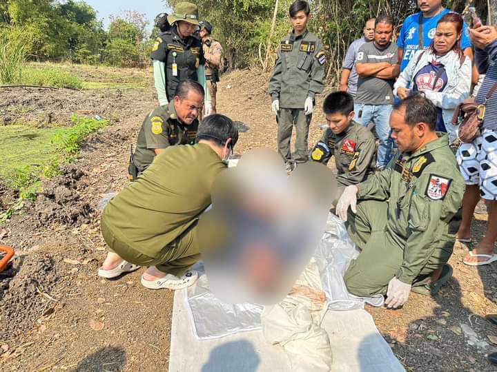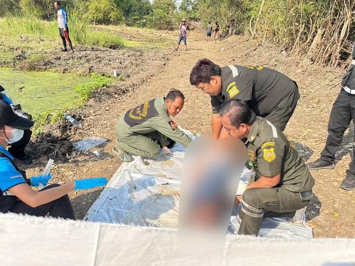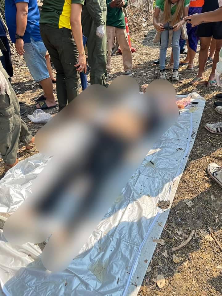 สอบภายในคูน้ำ ซึ่งมีระดับน้ำแค่หัวเข่า พบกับศพ นาย สมยศ เกดุทอง อายุ 79 ปี