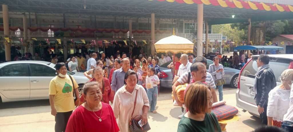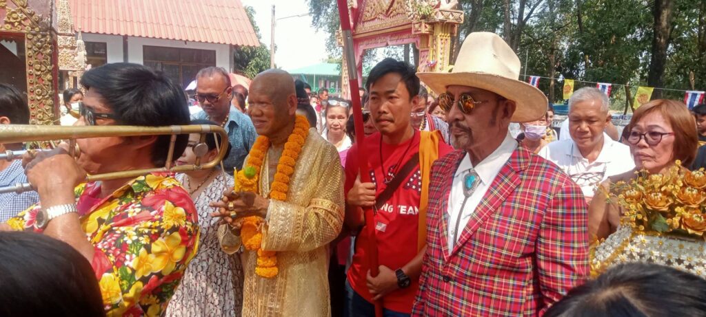 จากนั้นเข้าสู่พิธีแห่นาคแบบดั้งเดิม โดยมีบรรดาลูกศิษย์และพระฤาษี ทั้งชาวไทยและลาว ที่มาร่วมอนุโมทนาบุญด้วย ทำให้ขบวนยาวขึ้นเรื่อยๆ ทำให้รถของลูกศิษย์ที่มาร่วมงานติดเป็นกิโล
