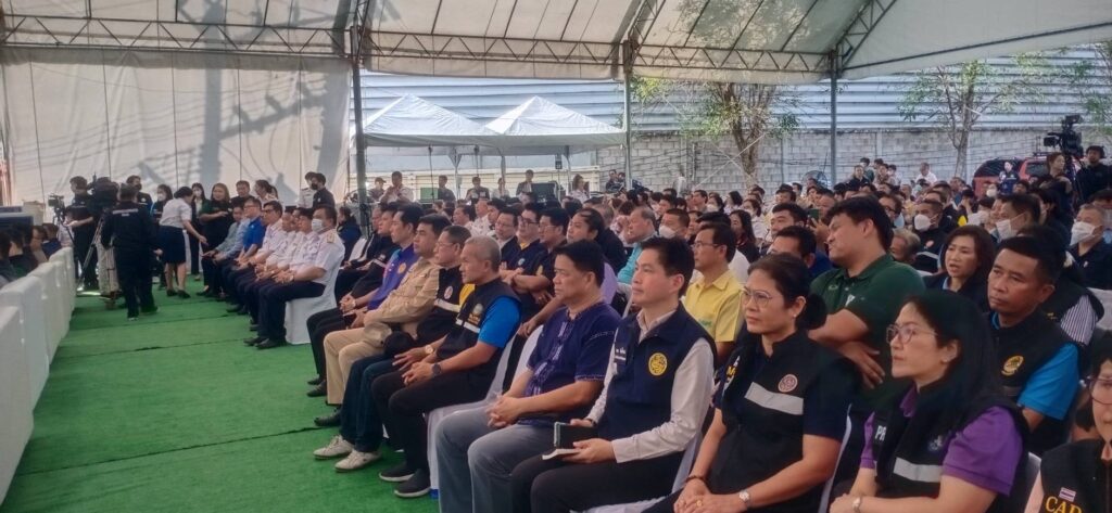 วันที่ 2 กุมภาพันธ์ 2567 ที่วัดศรีสุทธาราม (วัดกำพร้า) ต.บางหญ้าแพรก อ.เมือง จ.สมุทรสาคร ร้อยเอก ธรรมนัส พรหมเผ่า รัฐมนตรีว่าการกระทรวงเกษตรและสหกรณ์ เป็นประธาน “เปิดปฏิบัติการแก้ไขปัญหาการแพร่ระบาดของปลาหมอสีคางดำที่ส่งผลกระทบต่อระบบนิเวศในแหล่งน้ำธรรมชาติ” มอบธงสัญลักษณ์พร้อมปล่อยขบวนเรือชาวประมงออกปฏิบัติการ 23 ลำในแม่น้ำท่าจีน และปล่อยพันธุ์ปลากะพงขาว 60,000 ตัวพร้อมกันในพื้นที่นำร่อง 5 จังหวัด ได้แก่ จังหวัดสมุทรสาคร สมุทรสงคราม สมุทรปราการ เพชรบุรี และกรุงเทพมหานคร เพื่อควบคุมและกำจัดประชากรปลาหมอสีคางดำในแหล่งน้ำธรรมชาติ โดยมี ณัฐชา บุญไชยอินสวัสดิ์ ส.ส.กรุงเทพฯ พรรคก้าวไกล นายวรณัฎฐ์ หนูรอต รองผู้ว่าราชการจังหวัดสมุทรสาคร หัวหน้าส่วนราชการในสังกัดกระทรวงเกษตรและสหกรณ์ และประชาชนในพื้นที่ให้การต้อนรับและร่วมกิจกรรม