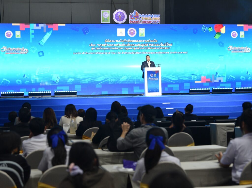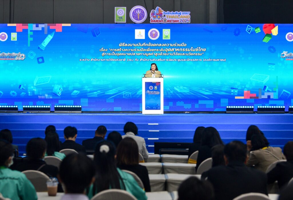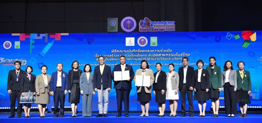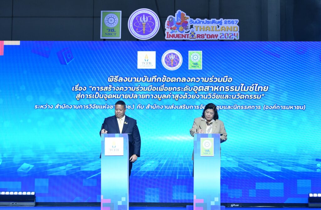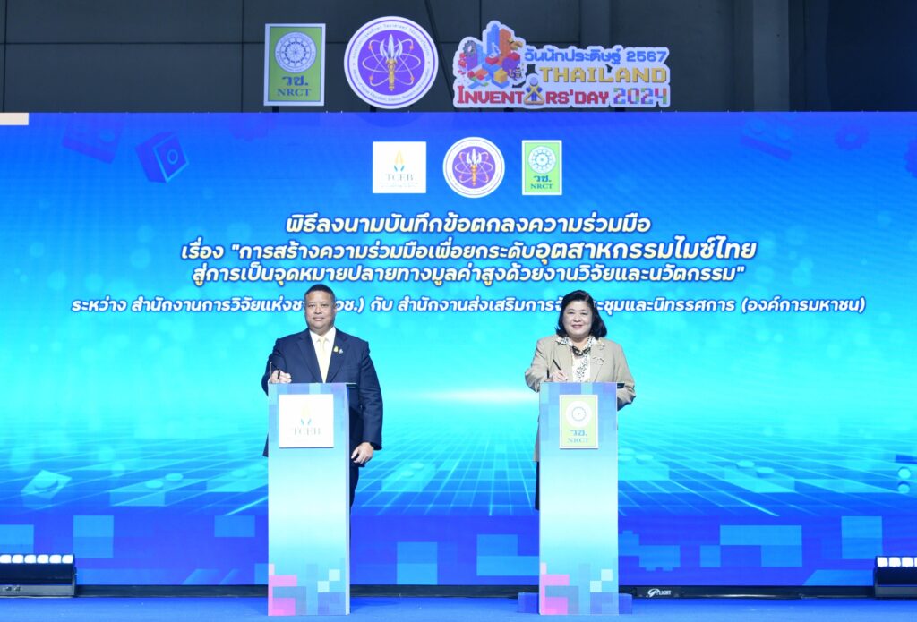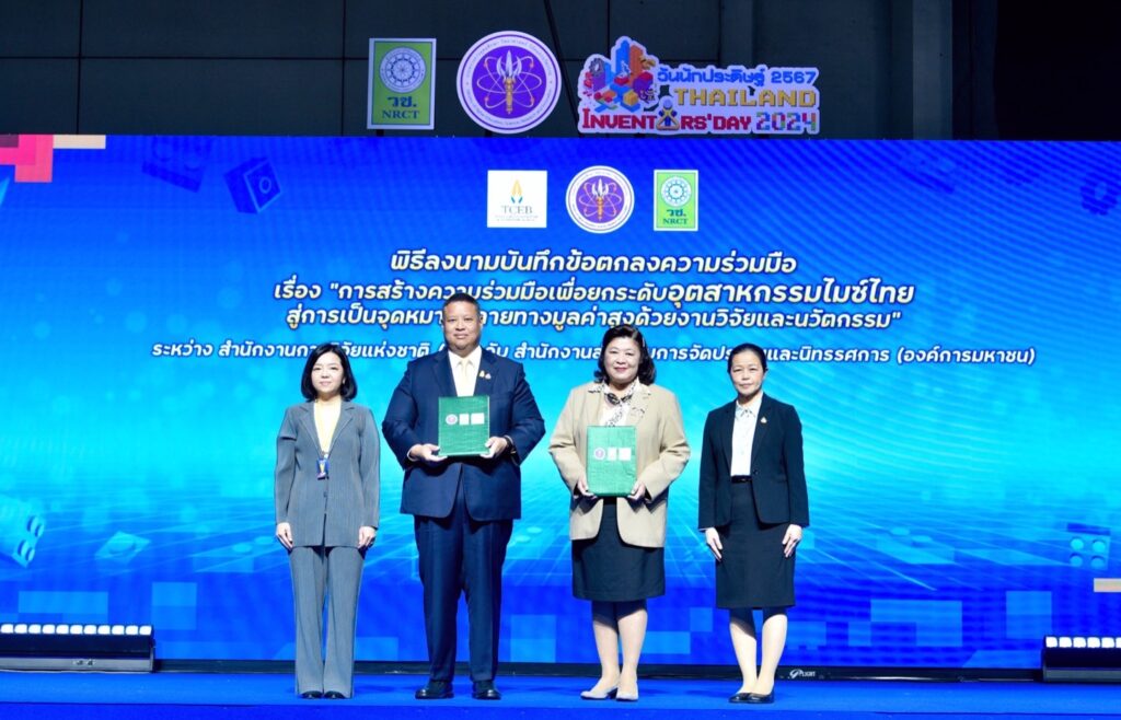 เมื่อวันที่ 5 กุมภาพันธ์ 2567 ในงาน “วันนักประดิษฐ์” ประจำปี 2567 สำนักงานการวิจัยแห่งชาติ(วช.) กระทรวงการอุดมศึกษา วิทยาศาสตร์ วิจัยและนวัตกรรม และ สำนักงานส่งเสริมการจัดประชุมและนิทรรศการ (องค์การมหาชน) ร่วมบันทึกข้อตกลงความร่วมมือ (MOU) เพื่อยกระดับอุตสาหกรรมไมซ์ไทยสู่การเป็นจุดหมายปลายทางมูลค่าสูงด้วยงานวิจัยและนวัตกรรม โดยมี ดร.วิภารัตน์ ดีอ่อง ผู้อำนวยการสำนักงานการวิจัยแห่งชาติ และนายจิรุตถ์ อิศรางกูร ณ อยุธยา ผู้อำนวยการสำนักงานส่งเสริมการจัดประชุมและนิทรรศการ (องค์การมหาชน) ร่วมลงนาม