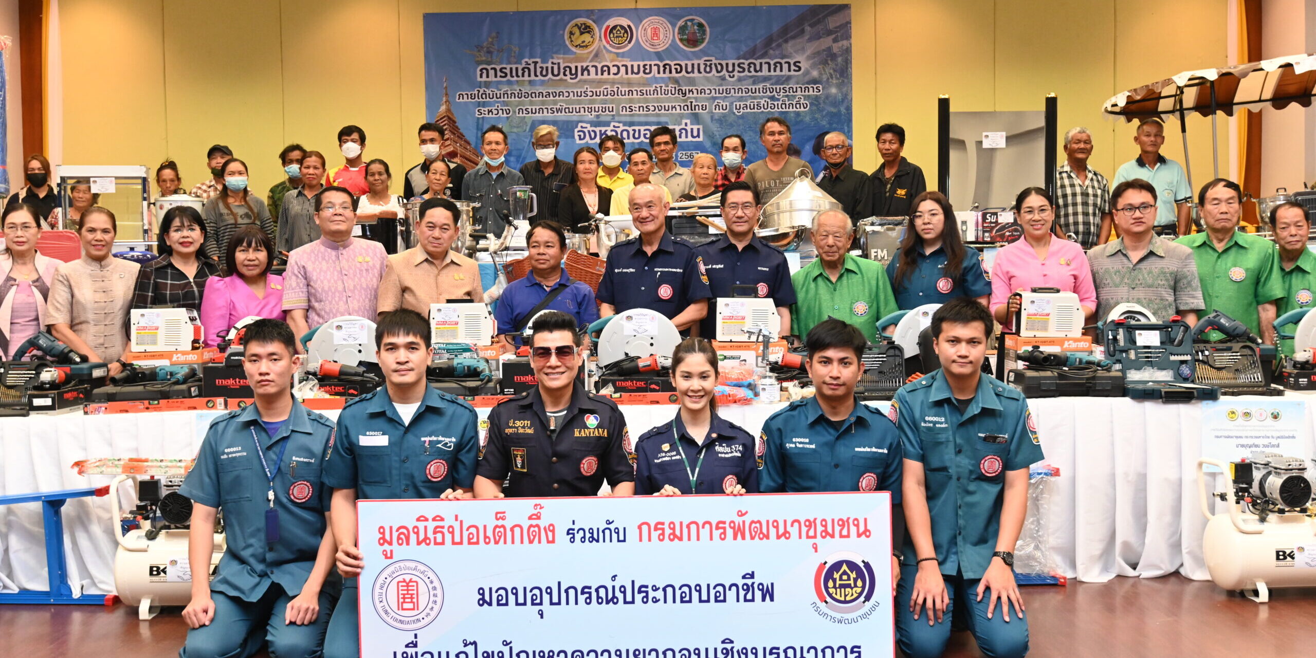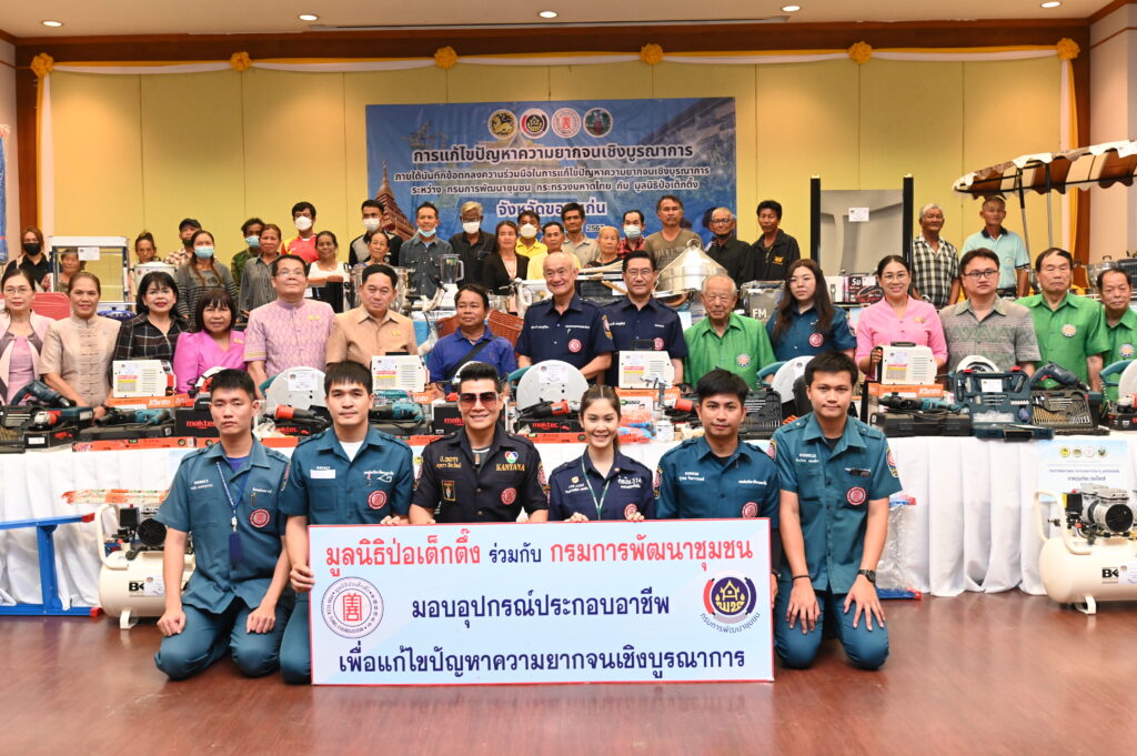 วันนี้ (วันอังคารที่ 6 กุมภาพันธ์ พ.ศ. 2567) มูลนิธิป่อเต็กตึ๊ง นำโดย นายสุรพงษ์ เตชะหรูวิจิตร กรรมการและรองเลขาธิการ เป็นประธานในพิธี พร้อมด้วย นายสุรพงศ์ เสรฐภักดี กรรมการและรองเหรัญญิก ร่วมในพิธีมอบอุปกรณ์ประกอบอาชีพให้กับครัวเรือนยากจนในพื้นที่จังหวัดขอนแก่น จำนวน 25 ครัวเรือน พร้อมทั้งมอบจักรยาน ในโครงการ จักรยานเพื่อน้องสัญจร ครั้งที่ 4 จำนวน 50 คัน กระบอกน้ำ จำนวน 250 ใบ แก่โรงเรียนที่ขาดแคลน รวม 5 แห่ง เพื่อให้นักเรียนที่ประสบปัญหาในการเดินทางได้ยืมเรียน รวมถึงเป็นการแบ่งเบาภาระค่าพาหนะแก่ผู้ปกครองได้อีกทางหนึ่ง อีกทั้งยังเสริมสร้างให้นักเรียนได้ออกกำลังกาย เรียนรู้กฎจราจร เรียนรู้การแบ่งปัน และดูแลรักษาสาธารณสมบัติร่วมกัน รวมมูลค่าการมอบในครั้งนี้ทั้งสิ้น 647,100 บาท (หกแสนสี่หมื่นเจ็ดพันหนึ่งร้อยบาทถ้วน) โดยมี นายไกรสร กองฉลาด ผู้ว่าราชการจังหวัดขอนแก่น นายจิรศักดิ์ สีหามาตย์ รองผู้ว่าราชการจังหวัดขอนแก่น พร้อมด้วย นางนวลจันทร์ ศรีมงคล ผู้ตรวจราชการ กรมการพัฒนาชุมชน เป็นประธานร่วมในพิธี คณะมูลนิธิจิตกุศลของแก่น เป็นผู้ประสานงานและร่วมในพิธี นายปิยะวัฒน์ รัตนหรูวิจิตร (หรูหรา) อาสาสมัครศิลปิน