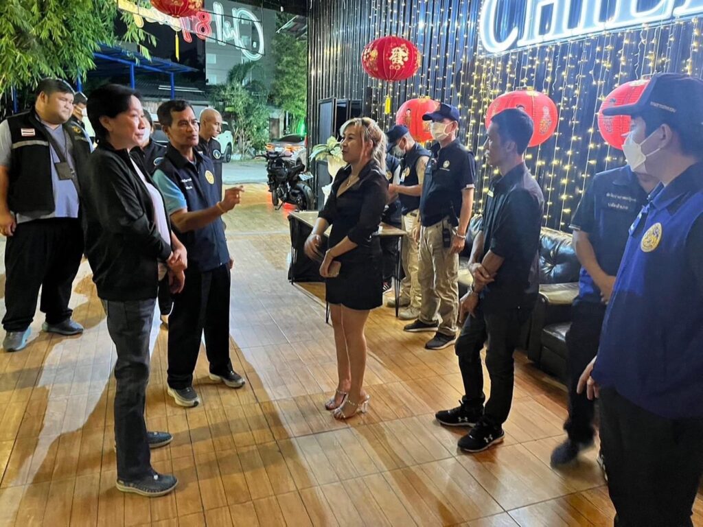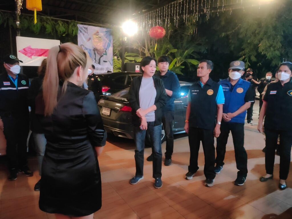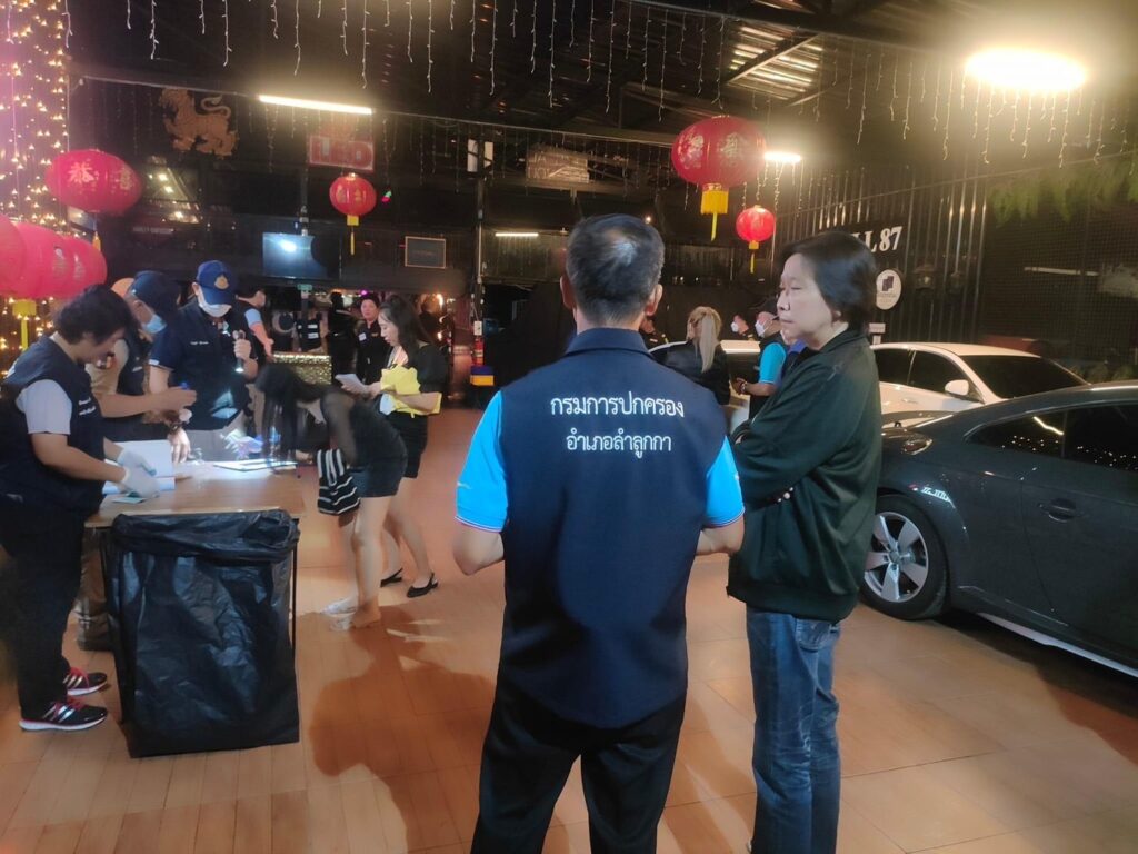 วันที่ 7 กุมภาพันธ์ 2567 ผู้สื่อข่าวรายงานว่า นางสาวธนียา นัยพินิจ รองผู้ว่าราชการจังหวัดปทุมธานี พร้อมด้วยนายสมชาย ตรีณาวงษ์ นายอำเภอลำลูกกา นายชัยวัฒน์ พราหมชูเอมณ์ ปลัดอำเภอ นายปัญธณัฐ พหรมโชติ ปลัดอำเภอ บูรณาการร่วมกับ พ.ต.ท.สุรชา โคตรวงษ์ทอง สวป.สภ.คูคต นายศุภฤกษ์ ว่านกระ สาธารณสุขอำเภอลำลูกกา เจ้าหน้าที่สรรพสามิตพื้นที่ปทุมธานี 2 เจ้าหน้าที่ตำรวจสถานีตำรวจภูธรคูคตเจ้าหน้าที่เทศบาลเมืองคูคต เจ้าหน้าที่เทศบาลเมืองลาดสวาย และสมาชิกกองอาสารักษาดินแดนอำเภอลำลูกกาที่ 6 ออกตรวจจัดระเบียบสังคมสถานประกอบการที่เปิดให้บริการในลักษณะคล้ายสถานบริการ จำนวน 3 แห่ง ในพื้นที่ตำบลลาดสวาย และตำบลคูคต อำเภอลำลูกกา จังหวัดปทุมธานี