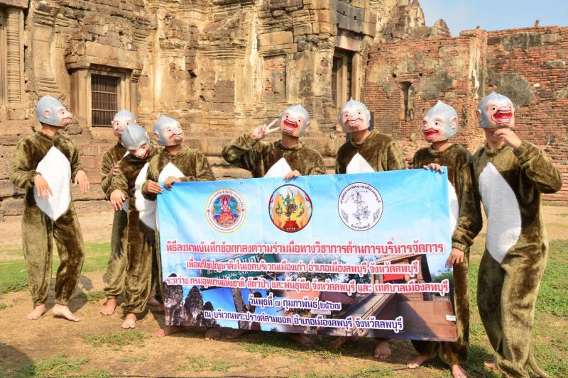 เมื่อวันที่ ๗ กุมภาพันธ์ ๒๕๖๗ พิธีลงนามบันทึกข้อตกลงความร่วมมือทางวิชาการด้านบริหารจัดการเพื่อแก้ไขปัญหาลิงในเขตบริเวณเมืองเก่า ระหว่าง นายอรรถพล เจริญชันษา อธิบดีกรมอุทยานแห่งชาติ สัตว์ป่า และพันธุ์พืช นายปรัชญา เปปะตัง รองผู้ว่าราชการจังหวัดลพบุรี และ นายจำเริญ สละชีพ นายกเทศมนตรีเมืองลพบุรี ณ บริเวณพระปรางค์สามยอด ตามที่จังหวัดลพบุรีประสบปัญหาเรื่องลิงรบกวน เพื่อร่วมกันขับเคลื่อนการแก้ไขปัญหาลิงในเขตบริเวณเมืองเก่าลพบุรี ภายใต้แผนแม่บทการบริหารจัดการปัญหาลิงในจังหวัดลพบุรีอย่างยั่งยืน โดยมีวิสัยทัศน์ “ประชาชนสุขใจ ลิงปลอดภัย อยู่ร่วมกันอย่างยั่งยืน” ร่วมกับภาคีเครือข่ายทุกภาคส่วนในระดับจังหวัด ตามมาตรการระยะสั้น ระยะกลาง และระยะยาว ซึ่งตามพระราชบัญญัติสงวนและคุ้มครองสัตว์ป่า พ.ศ. ๒๕๖๒ กำหนดให้ “ลิง เป็นสัตว์ป่าคุ้มครอง” โดยมีกฎหมายเฉพาะ และวิธีดำเนินการเกี่ยวกับลิงที่เป็นการเฉพาะตามกฎหมาย ดังนั้น เพื่อปลดล็อคอุปสรรคดังกล่าวและสามารถเคลื่อนย้ายลิงเข้าสู่สถานอนุบาลลิงได้ จึงได้เกิดความร่วมมือของทั้ง ๓ ฝ่าย ได้แก่ กรมอุทยานแห่งชาติ สัตว์ป่า และพันธุ์พืช จังหวัดลพบุรี และเทศบาลเมืองลพบุรี ในการจัดทำบันทึกข้อตกลงความร่วมมือทางวิชาการด้านการบริหารจัดการเพื่อแก้ไขปัญหาลิงในเขตบริเวณเมืองเก่า ด้านการช่วยเหลือและแก้ไขปัญหาลิง โดยเทศบาลเมืองลพบุรีจะจับลิงในเขตเมืองเก่าที่ทำหมันแล้ว นำมาดูแลรักษาที่สถานอนุบาลลิง และกรมอุทยานฯ จะมอบอำนาจการจับลิง และดูแลรักษาลิงในสถานอนุบาลลิง ให้เทศบาลเมืองลพบุรี รวมทั้งสนับสนุนให้มีการดำเนินงานให้เป็นไปด้วยความเรียบร้อย ๒ ด้านวิชาการ ทุกฝ่ายจะร่วมมือกันทางวิชาการที่เกี่ยวข้องกับการจับลิง การดูแลรักษาลิง และการจัดการสุขภาพและสวัสดิการลิงในสถานอนุบาลลิง ๓ ด้านงบประมาณ ทุกฝ่ายจะร่วมมือกันในการพิจารณาจัดสรรงบประมาณ โดยกรมอุทยานฯ จะพิจารณาจัดสรรงบประมาณ เพื่อปรับปรุงกรง/คอก ที่ศูนย์ช่วยเหลือสัตว์ป่าที่ ๑ (นครนายก) เพื่อเตรียมการรองรับการเคลื่อนย้ายลิงจากสถานอนุบาลลิง ๔ ด้านการประสานงาน ทุกฝ่ายจัดจัดให้มีเจ้าหน้าที่ผู้ประสานงาน