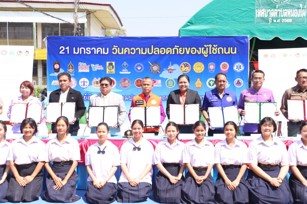 นอกจากนี้ภายในงานยังมีการลงนาม บันทึกข้อตกลงความร่วมมือ MOU ระหว่าง ศูนย์อำนวยการความปลอดภัยทางถนนจังหวัดเพชรบูรณ์ กับ โรงเรียนหนองไผ่ และโรงเรียนอนุบาลหนองไผ่ ในการส่งเสริมให้บุคลากร ครู และนักเรียนต้องปฏิบัติตามกฎจราจรและระเบียบกฎหมายที่เกี่ยวข้อง รวมทั้ง กำหนดมาตรการเพื่อความปลอดภัยทางถนนขึ้นภายในโรงเรียนและบังคับใช้กับทุกคนโดยให้ถือปฏิบัติอย่างเคร่งครัด ให้โรงเรียนหนองไผ่ และโรงเรียนอนุบาลหนองไผ่ เป็นเขตสวมหมวกนิรภัย 100 % และ ร่วมกันส่งเสริมประชาสัมพันธ์เพื่อให้ประชาชนได้ตระหนักถึงอันตรายจากอุบัติเหตุทางถนน