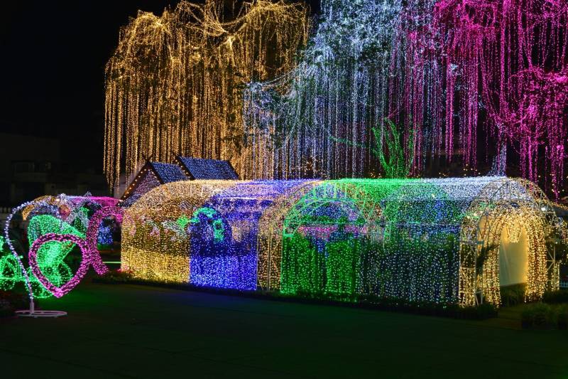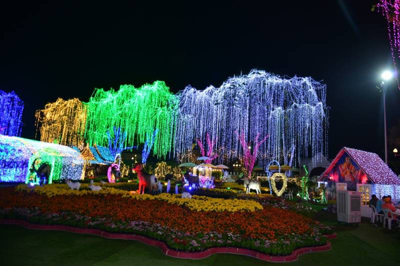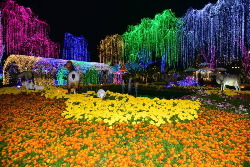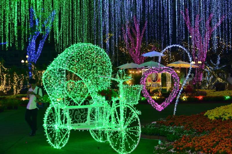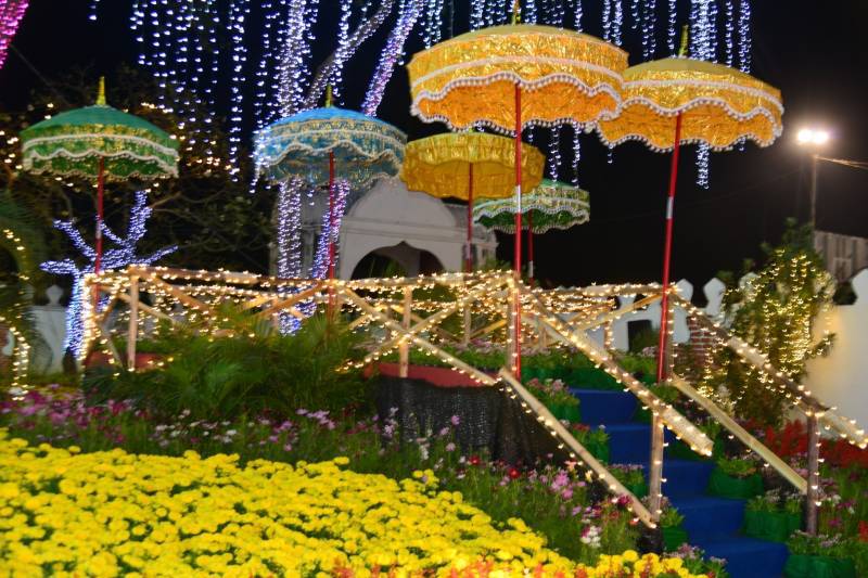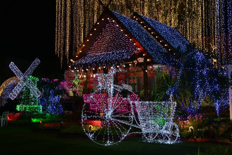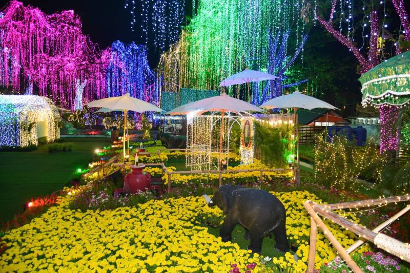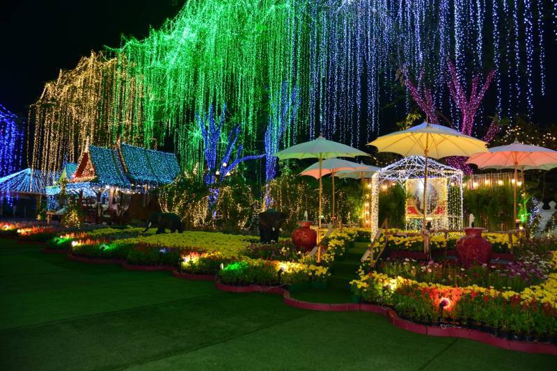 เนรมิตประดับไฟฟ้า แสงสี พันธ์ุไม้ดอกไม้ประดับนานาชนิด เพื่อสร้างสีสันความสวยงามอย่างยิ่งใหญ่สุดอลังการ อย่างตระการตา “สวนสวรรค์ วังพระนารายณ์”