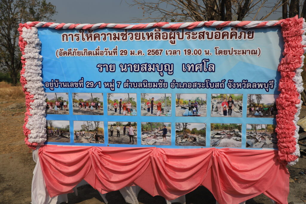 วันที่ 8 กุมภาพันธ์ 2567 เวลา 15.00 น. พระบาทสมเด็จพระเจ้าอยู่หัว ทรงพระกรุณาโปรดเกล้าโปรดกระหม่อมให้มูลนิธิราชประชานุเคราะห์ ในพระบรมราชูปถัมภ์ นำสิ่งของพระราชทานไปมอบให้กับ ผู้ประสบอัคคีภัยในพื้นที่ตำบลนิยมชัย อำเภอสระโบสถ์ จังหวัดลพบุรี โดยมีนายปรัชญา เปปะตัง รองผู้ว่าราชการจังหวัดลพบุรี เป็นผู้เชิญสิ่งของพระราชทาน มอบให้แก่ นายสมบุญ เทศโล เจ้าของบ้านเลขที่ 29/1 หมู่ที่ 7 ตำบลนิยมชัย อำเภอสระโบสถ์ จังหวัดลพบุรี