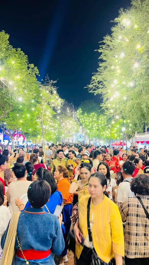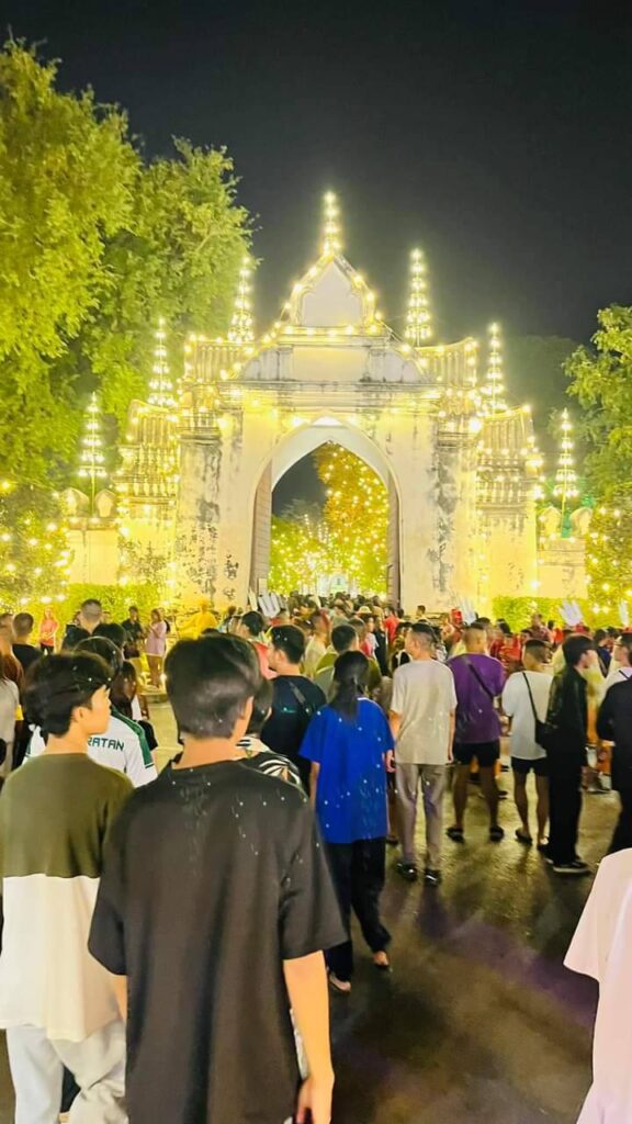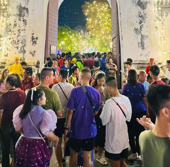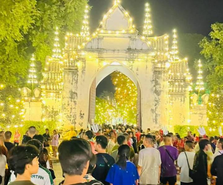 บรรยากาศยามค่ำคืน คืนแรกของงาน แผ่นดินสมเด็จพระนารายณ์มหาราช ประจำปี2567 ครั้งที่ 36 ณ วังนารายณ์ราชนิเวศน์ ตำบลท่าหิน อำเภอเมือง จังหวัดลพบุรี มีนักท่องเที่ยวชาวไทยและชาวต่างประเทศและผู้คนแห่เที่ยวงานแน่น คาดว่าเงินเข้าจังหวัดกว่าร้อยล้านบาท