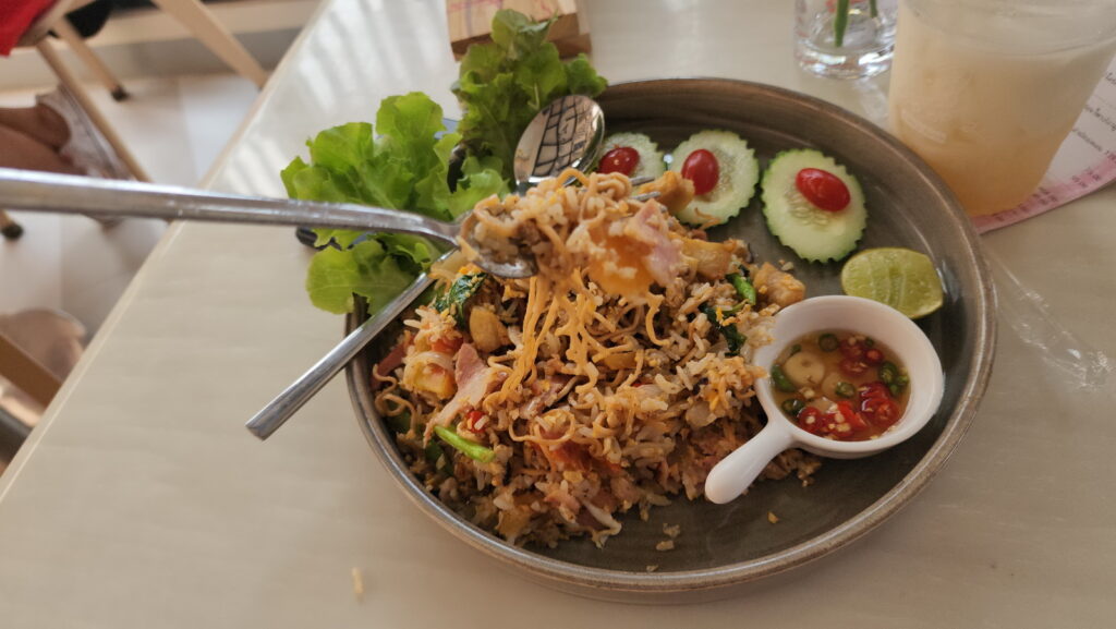 คุณนวพร ติณสุข อายุ 36 ปี เจ้าของร้าน A Cup of Zoo Café กล่าวว่า เนื่องจากร้านของเราเปิดเป็นคาเฟ่สัตว์เลี้ยง ดังนั้นเมนูภายในร้านจึงอยากมีเมนูที่เป็นซินเนเจอร์จึงเกิดเมนูข้าวหมาข้าวแมว โดยเราได้ไอเดียชื่อเมนูมาก่อน จากนั้นจึงมานั่งคิดว่าเราจะทำอาหารประเภทไหนที่เข้ามาชื่อเมนูของเรา อย่างเมนูข้าวแมว แมวชอบกินปลาทู เราจึงได้สูตรอาหารข้าวผัดสมุนไพรปลาทูขึ้นมา ส่วนเมนูข้าวหมาเรามักจะคลุกหลายๆอย่างในจานให้เข้ากัน เราจึงคิดสูตรอาหารข้าวว่าจาก ข้าวผัดรวมกับมาม่าใส่เบคอนหมูสับหลายๆอย่างในจาน สำหรับคนรับประทาน ไม่ใช่ของสัตว์เลี้ยง แต่คนกินได้เพียงแค่ตั้งชื่อเฉยๆ รับรองอร่อยสำหรับทุกคน