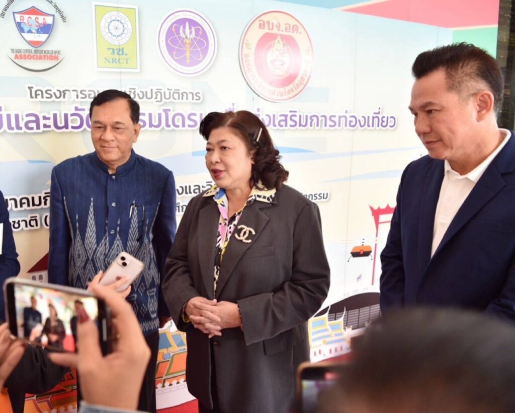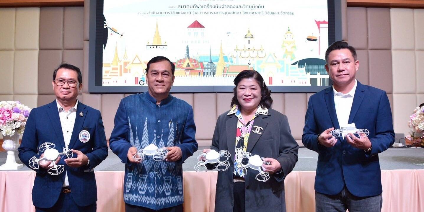 ดร.วิภารัตน์ ดีอ่อง ผู้อำนวยการสำนักงานการวิจัยแห่งชาติ (ผอ.วช.) กล่าวว่า (วช.) มีนโยบายที่มุ่งส่งเสริม และสนับสนุนการพัฒนาด้านการศึกษา การพัฒนาวิทยาศาสตร์และเทคโนโลยี ให้เกิดการสร้างนวัตกรรมสิ่งประดิษฐ์ใหม่ๆ เพื่อให้เกิดนวัตกรรมที่หลากหลาย ส่งเสริมการท่องเที่ยว และเป็นประโยชน์ต่อการพัฒนาประเทศ โดย (วช.) ได้ให้การสนับสนุนสมาคมกีฬาเครื่องบินจำลองและวิทยุบังคับ ผ่านโครงการอบรมเชิงปฏิบัติการการถ่ายทอดเทคโนโลยีโดรนแปรอักษรเพื่อประยุกต์สู่การใช้งาน โดยในปีนี้ สมาคมกีฬาเครื่องบินจำลองและวิทยุบังคับได้ขยายผลการดำเนินงานเป็นการประยุกต์ใช้เทคโนโลยีและนวัตกรรมโดรน เพื่อส่งเสริมการท่องเที่ยว โดยมีเป้าหมายเพื่อถ่ายทอดองค์ความรู้เทคโนโลยีที่ทันสมัยเกี่ยวกับ “โดรน” (Drone) ให้บุคลากรด้านการท่องเที่ยวในพื้นที่ เพื่อนำความรู้ที่ได้รับมาพัฒนาต่อยอดประยุกต์ใช้กับการทำงานในสาขาภาคอุตสาหกรรมเพื่อส่งเสริมการท่องเที่ยว อันจะนำไปสู่การพัฒนาที่มีประสิทธิภาพ