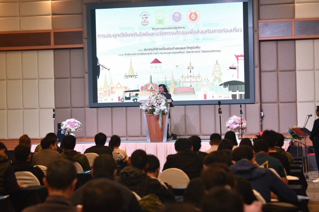 นายพิศิษฐ์ มิตรเกื้อกูล นายกสมาคมกีฬาเครื่องบินจำลองและวิทยุบังคับ กล่าวรายงานว่า สมาคมกีฬาเครื่องบินจำลองและวิทยุบังคับได้รับการสนับสนุนจาก (วช.) จัดโครงการ “การประยุกต์ใช้เทคโนโลยีและนวัตกรรมโดรนเพื่อส่งเสริมการท่องเที่ยว” เพื่อถ่ายทอดองค์ความรู้เทคโนโลยีที่ทันสมัยเกี่ยวกับ “โดรน” โดยผู้เข้าอบรมจะได้เรียนรู้แนวทางการนำโดรนไปใช้เพื่อเพิ่มศักยภาพในด้านการท่องเที่ยว และการนำโดรนไปประยุกต์ใช้ในการประกอบอาชีพ และในโครงการยังจัดให้มีกิจกรรมส่งเสริมด้านการท่องเที่ยว โดยจัดการแสดงการบินโดรนแปรอักษร จำนวน 800 ลำ ซึ่งจังหวัดอุดรธานี เป็นจังหวัดที่ 3 ของจังหวัดต้นแบบ ของภาคตะวันออกเฉียงเหนือ โดยมีการจัดอบรมในระหว่างวันที่ 11-12 กุมภาพันธ์ 2567 ณ โรงแรมสยามแกรนด์อุดรธานี จังหวัดอุดรธานี