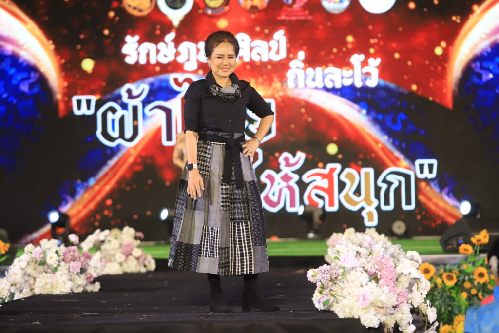 รองผู้ว่าราชการจังหวัดลพบุรี กล่าวว่า จังหวัดลพบุรี ได้นำแนวนโยบายของกระทรวงมหาดไทยในการน้อมนำพระดำริ”ผ้าไทยใส่ให้สนุก” ในสมเด็จพระเจ้าลูกเธอ เจ้าฟ้าสิริวัณณวรี นารีรัตนราชกัญญา มาสู่การขับเคลื่อนและส่งเสริมการอนุรักษ์ภูมิปัญญาผ้าไทย ด้วยการเชิญชวนให้ส่วนราชการและพี่น้องชาวจังหวัดลพบุรี ได้ใช้และสวมใส่ผ้าไทยในทุกวัน และทุกโอกาส เป็นการส่งเสริมให้ช่างทอผ้าและผู้ประกอบการผ้าไทยได้ผลิตชิ้นงานก่อให้เกิดการสร้างงาน สร้างอาชีพ สร้างรายได้ และพัฒนาต่อยอดผลิตภัณฑ์ผ้าไทยของจังหวัดลพบุรีให้ทันสมัย ด้วยการออกแบบชุดผ้าไทยให้มีความสวยงามหลากหลายสไตล์ นำไปสู่การส่งเสริมเศรษฐกิจฐานราก เกิดแรงขับเคลื่อนในชุมชน ทำให้ประชาชนในชุมชน สามารถพึ่งพาตนเองตามหลักปรัชญาของเศรษฐกิจพอเพียง นอกจากนี้การจัดกิจกรรมการเดินแบบผ้าไทยตามโครงการรักษ์ภูษาศิลป์ถิ่นละโว้ “ผ้าไทยใส่ให้สนุก” แล้วยังจัดให้มีกิจกรรมการประกวดการออกแบบและตัดเย็บผ้าไทยจากทุกอำเภอของจังหวัดลพบุรีเพื่อส่งเสริมและต่อยอดการพัฒนาการออกแบบตัดเย็บและผลิตชุด “ผ้าไทยใส่ให้สนุก”จากกลุ่มสตรี กลุ่มผู้ผลิตผู้ประกอบการ OTOP ประเภทผ้าและเครื่องแต่งกายของจังหวัดลพบุรี ซึ่งเป็นการประชาสัมพันธ์ ส่งเสริมการใช้และการสวมใส่ผ้าไทย ให้เป็นที่ รู้จักอย่างแพร่หลายส่งผลกับจังหวัดลพบุรีอย่างยั่งยืนตลอดจนตอบสนองนโยบายรัฐบาล ในการสร้างพลังสร้างสรรค์เชิงวัฒนธรรมหรือ “Soft Power”