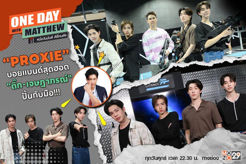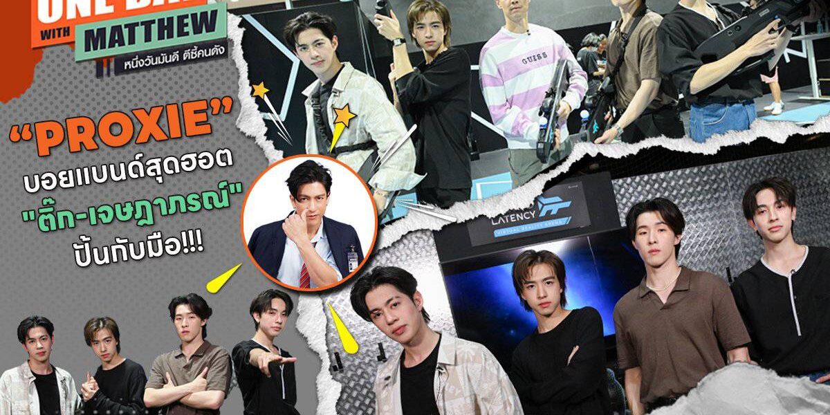 วินาทีนี้ไม่มีใครไม่รู้จักบอยแบนด์วง PROXIE จากค่าย bROTHERS MUSIC นำทีมโดย กัน-รัชชานนท์ เรือนเพ็ชร์, คิม-ปัณณธร จิรศาสตร์, อองลี-เอ็ดเวิร์ด วัตราเศรษฐ์ และ วิคเตอร์-วรเมธ กอนุประพันธ์ โดยสองหนุ่ม กร-กร วรรณไพโรจน์ และ โชกุน-ปวริศร์ ศรีชัยชนะ วันนี้ติดภารกิจไม่ได้มาร่วมแจมกับพิธีกร แมทธิว ดีน แห่งรายการ “วัน เดย์ วิท แมทธิว หนึ่งวันมันดี ตีซี้คนดัง (One Day With Matthew)” ทางช่อง MONO29 ซึ่งจะพา 4 หนุ่ม กัน , คิม , อองลี, วิคเตอร์ ไปเปิดประสบการณ์เล่นเกม VR สุดล้ำมันสุดใจใน Zero Latency Thailand ณ ศูนย์การค้า Emquartier ชั้น 4 โซน B พี่ใหญ่ประจำวงอย่าง กัน-รัชชานนท์ เผยความสมบูรณ์กว่าจะเป็นบอยกรุ๊ปให้ฟังว่า