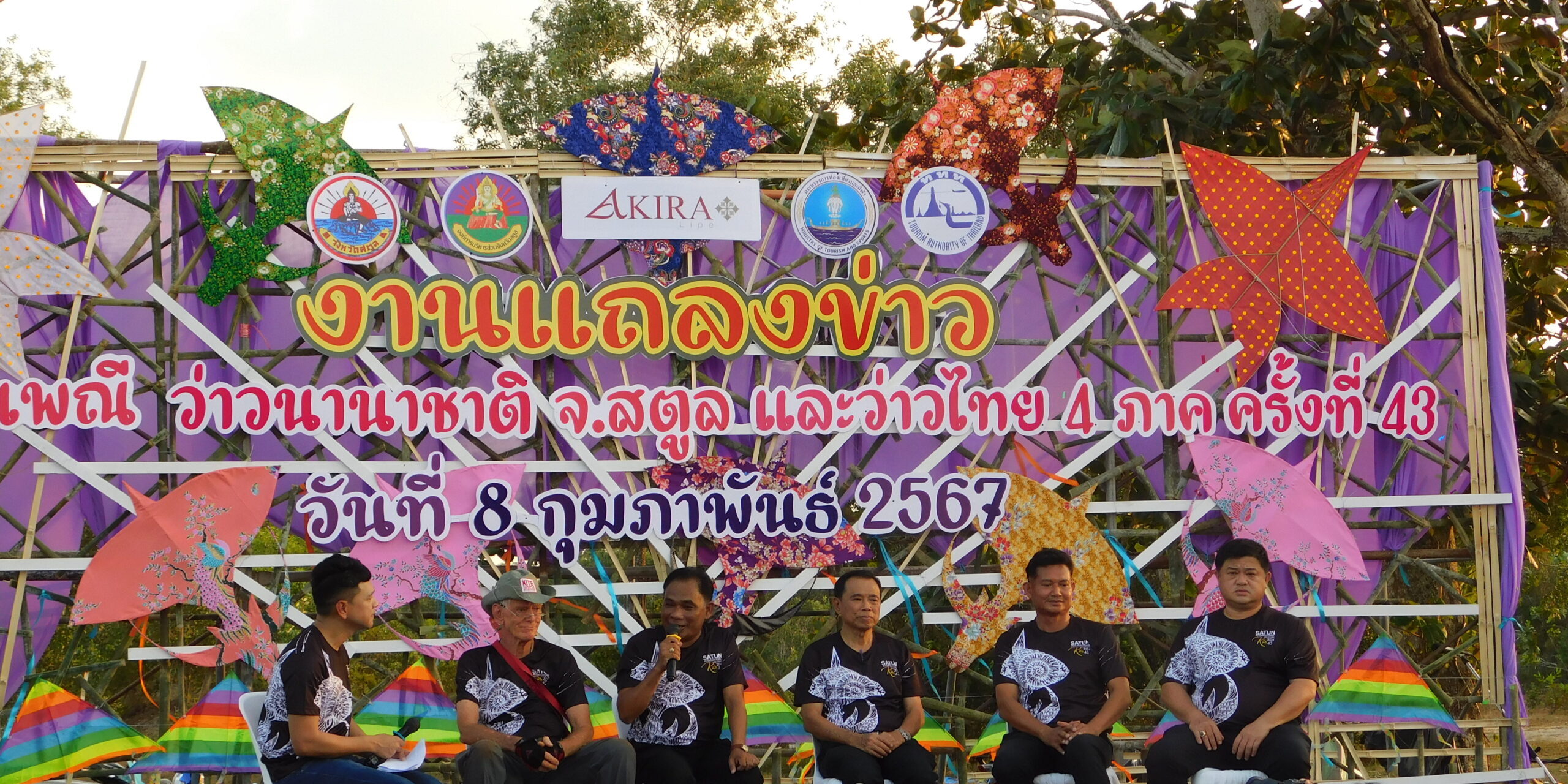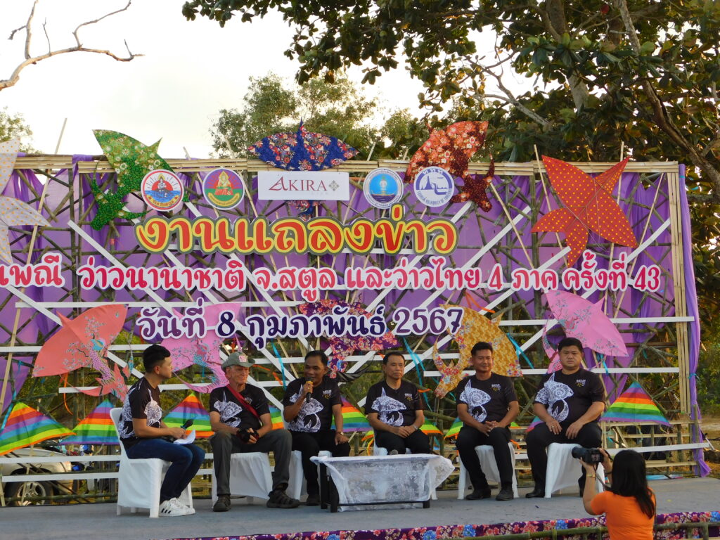 นายชัยวุฒิ บัวทอง ปลัดจังหวัดสตูล พร้อมด้วยนายสัมฤทธิ์ เลียงประสิทธิ์ นายกองค์การบริหารส่วนจังหวัดสตูล , นายวริช วิชิต รองผู้อำนวยการการท่องเที่ยวแห่งประเทศไทย สำนักงานสตูล , นายดุลยภาค กรณฑ์แสง ผู้ช่วยท่องเที่ยวและกีฬาจังหวัดสตูล นักวิเคราะห์นโยบายและแผนชำนาญการพิเศษ และMr.Ron Spaulding นักแสดงว่าวนานาชาติ ร่วมแถลงข่าวการจัดงานมหกรรมว่าวประเพณีและว่าวนานาชาติ จังหวัดสตูล และว่าวไทย 4 ภาค ครั้งที่ 43 ประจำปี 2567 ซึ่งกำหนดจัดขึ้นระหว่างวันที่ 23 – 25 กุมภาพันธ์ 2567 ณ สนามบินกองทัพอากาศสตูล อำเภอเมือง จังหวัดสตูล