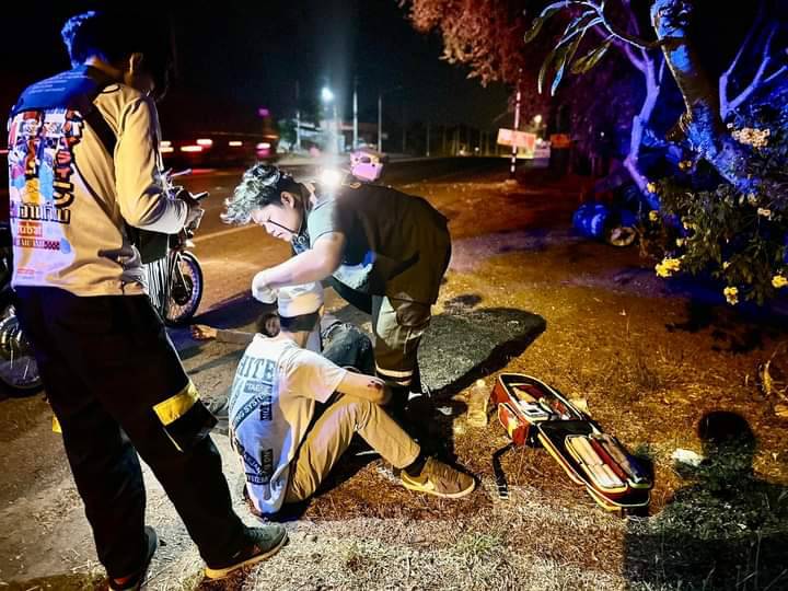 เมื่อเวลา 03.00 น ในวันอังคารที่ 13 กุมภาพันธ์ 2567 ศูนย์วิทยุมูลนิธิร่วมกตัญญู ได้ประสานงานจากศูนย์วิทยุกู้ชีพ 1669 ลพบุรี ว่า มีอุบัติเหตุ รถจักรยานยนต์ชนถังขยะ