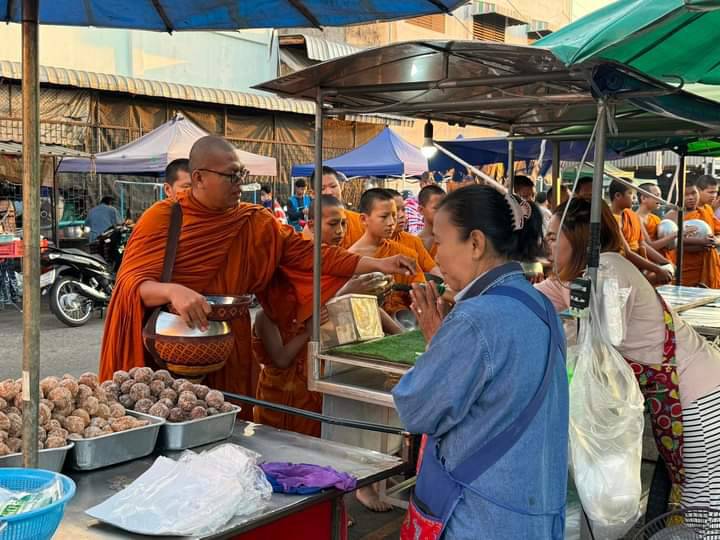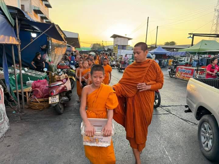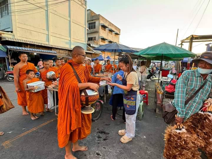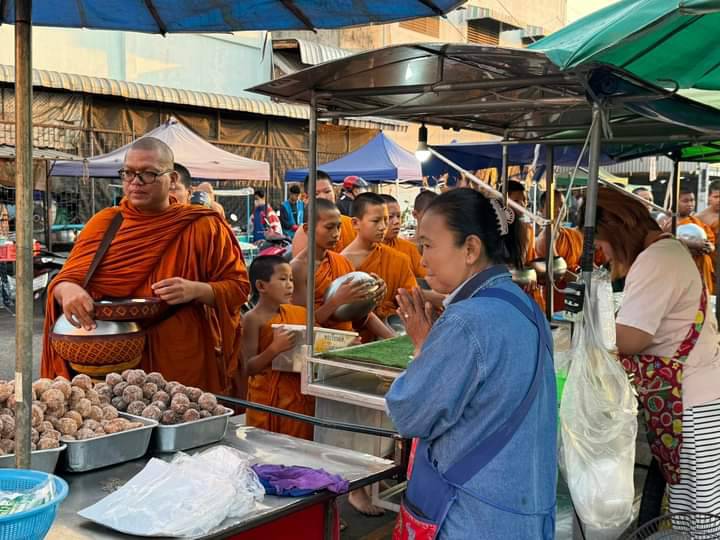 วัดถ้ำตะโกพุทธโสภา ลพบุรี บิณฑบาตที่เภอเมืองอ่างทอง