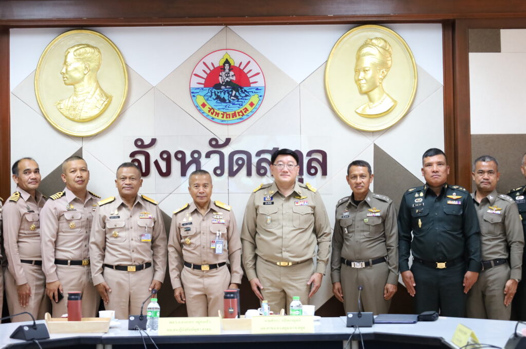 วันนี้ 14 ก.พ. 67 ที่ห้องรับรองผู้ว่าราชการจังหวัดสตูล ชั้น 4 ศาลากลางจังหวัดสตูล อำเภอเมืองสตูล จังหวัดสตูล นายศักระ กปิลกาญจน์ ผู้ว่าราชการจังหวัดสตูล ในฐานะผู้อำนวยการรักษาผลประโยชน์ของชาติทางทะเลจังหวัดสตูล ให้การต้อนรับ พลเรือเอกอาภากร อยู่คงแก้ว หัวหน้าสำนักงานผู้บังคับบัญชา ศูนย์อำนวยการรักษาผลประโยชน์ของชาติทางทะเลและคณะ เนื่องในโอกาสลงพื้นที่ตรวจติดตามการดำเนินงานของ ศรชล.ภาค 3 พื้นที่จังหวัดสตูล จากนั้นเข้าร่วมประชุมรับฟังปัญหาและข้อเสนอแนะในพื้นที่จังหวัดสตูล โดยมีนาวาเอกแสนย์ไท บัวเนียม รองผู้อำนวยการรักษาผลประโยชน์ของชาติทางทะเลจังหวัดสตูล พร้อมด้วยหัวหน้าส่วนราชการ และเจ้าหน้าที่ที่เกี่ยวข้องเข้าร่วมประชุมโดยพร้อมเพียงกัน ณ ห้องประชุมโต๊ะพญาวัง ชั้น 4 ศาลากลางจังหวัดสตูล