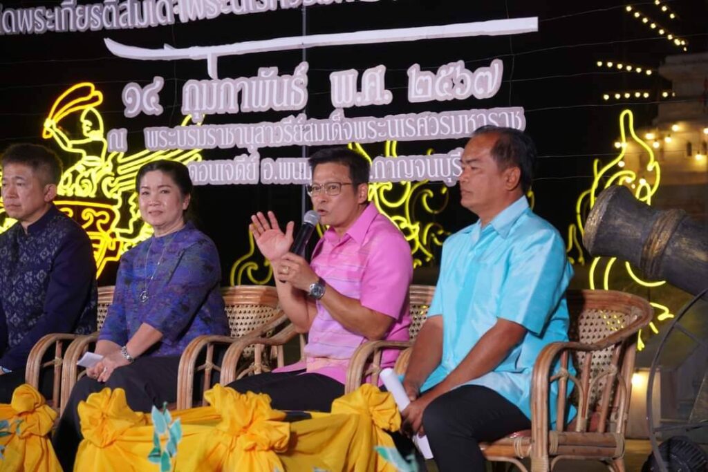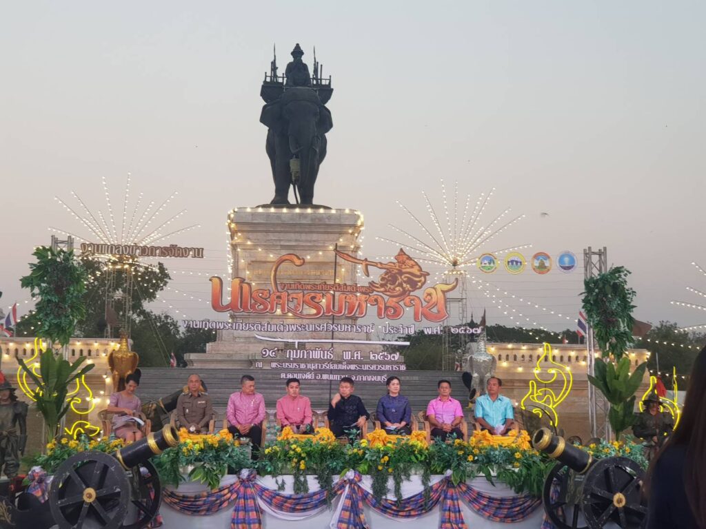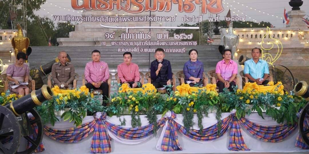 จังหวัดกาญจนบุรี ขอเชิญชวนพี่น้องประชาชนและนักท่องเที่ยว ร่วมเที่ยวงานเทิดพระเกียรติสมเด็จพระนเรศวรมหาราช ประจำปี พ.ศ. 2567 ตั้งแต่วันที่ 17 – 26 กุมภาพันธ์ 2567 ณ บริเวณลานพระบรมราชานุสาวรีย์สมเด็จพระนเรศวรมหาราช ตำบลดอนเจดีย์ อำเภอพนมทวน จังหวัดกาญจนบุรี