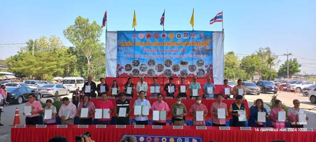 วันพุธที่ 14 กุมภาพันธ์ 2567 นายสุเมธ ธีรนิติ ผู้ว่าราชการจังหวัดสิงห์บุรี เป็นประธานเปิดเวที มอบบ้าน ประสานใจเป็นของขวัญปีใหม่ในวันแห่งความรัก ณ องค์การบริหารส่วนตำบลโพธิ์ประจักษ์ อำเภอท่าช้างจังหวัดสิงห์บุรี โดยนาวาอากาศโทพยนต์ สำริด คณะประสานงานขบวนองค์กรชุมชนจังหวัดสิงห์บุรี ร่วมกับนายกฤษดา สมประสงค์ ผู้อำนวยการสถาบันพัฒนาองค์กรชุมชน สำนักพัฒนาสังคมและความมั่นคงของมนุษย์จังหวัดสิงห์บุรี เหล่ากาชาดจังหวัดสิงห์บุรี องค์การบริหารส่วนตำบลโพธิ์ประจักษ์ สมัชชาสุขภาพจังหวัดสิงห์บุรี ส่วนราชการ ภาครัฐ ภาคเอกชน ภาคประชาสังคม และภาคีเครือข่าย ร่วมกันจัดกิจกรรมประกอบด้วย การเสวนาสานพลังภาคีสู่การพัฒนาคุณภาพชีวิตคนในชุมชนพิธีลงนามบันทึกข้อตกลงความร่วมมือ ชุมชนเป็นฐานบูรณาการทุกเรื่อง ใช้เครื่องมือพัฒนาองค์กรชุมชน บนวิถีประชาธิปไตยและวัฒนธรรมท้องถิ่น การมอบบ้านพอเพียง 16 ตำบล 265 ครัวเรือน รวมงบซ่อมสร้างบ้านพอเพียงจำนวน 4,977,000 บาท และงบประมาณสมทบกองทุนสวัสดิการชุมชน 12 ตำบล ยอดรวมจำนวน 705,870 บาทและเยี่ยมชมนิทรรศการพอเพียง
