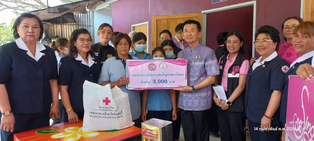 ต่อจากนั้น นายสุเมธ ธีรนิติ ผู้ว่าราชการจังหวัดสิงห์บุรีพร้อมนายกเหล่ากาชาดจังหวัดสิงห์บุรีและพัฒนาสังคมและความมั่นคงของมนุษย์จังหวัดสิงห์บุรี พร้อมคณะได้เดินทางลงเยี่ยมบ้านพอเพียงพื้นที่หมู่ที่ 2 ตำบลโพประจักษ์จำนวน 5 หลัง ได้พูดคุยให้กำลังใจแล้วมอบวัสดุและอุปกรณ์ซ่อมแซมบ้าน เครื่องอุปโภค-บริโภค และมอบเงินสงเคราะห์ครอบครัว เพื่อแก้ปัญหาให้ผู้มีรายได้น้อย ผู้ประสบภัยพิบัติและผู้พิการ มีบ้านพักอาศัยที่มั่นคงแข็งแรง ตามแบบบ้านพอเพียง ลดความเหลื่อมล้ำในสังคมและพัฒนาคุณภาพชีวิตแก่ผู้มีรายได้น้อยให้ดีขึ้น
