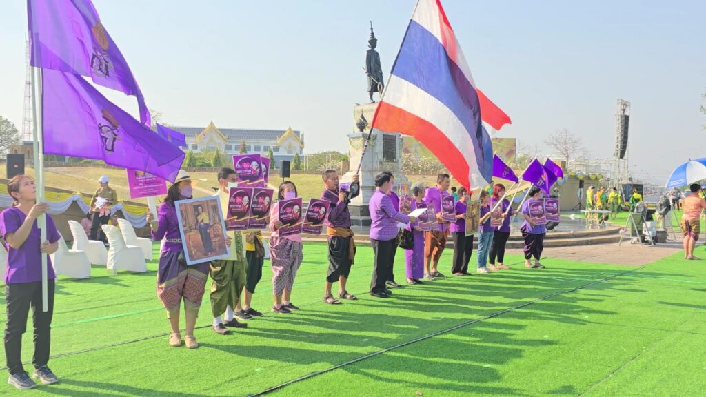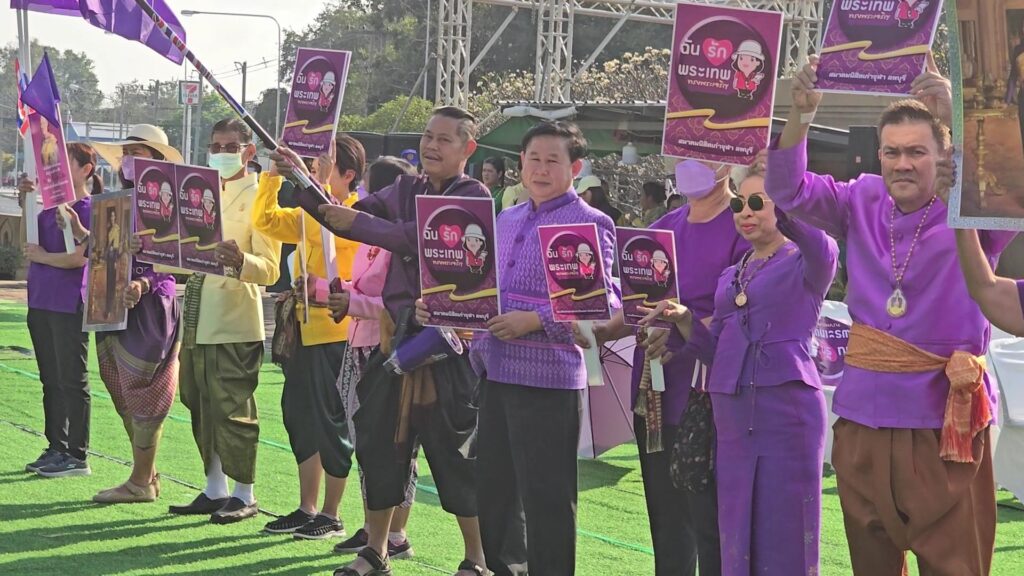 ที่ ลพบุรี นายนิมิตร์ เทียมมงคล เกษตรกรและปราชญ์ชาวบ้านดีเด่น เจ้าของสิทธิบัตรทางปัญญาถั่วงอกรักชาติ และเป็นผู้ที่เคยเฝ้ารับเสด็จ ถวานถั่วงอกรักชาติให้แด่ กรมสมเด็จพระเทพรัตนราชสุุดาฯ พร้อมด้วยตัวแทน เหล่าพสกนิกร ในจังหวัดลพบุรี ในนาม “ คนรัก สมเด็จพระเทพฯ ” ได้ร่วมกันสวมใส่เสื้อสีม่วงม่วง ซึ่งเป็นสีประจำพระองค์ และสีเหลือง ได้ออกมาแสดงออกด้วยการชูพระบรมฉายาลักษณ์ ของ สมเด็จพระกนิษฐาธิราชเจ้า กรมสมเด็จพระเทพรัตนราชสุดาฯ สยามบรมราชกุมารี พร้อมทั้งร่วมกันโบกธงชาติไทย และธงตราสัญญาลักษณ์ประจำพระองค์สีม่วง บริเวณด้านหน้าพระบรมราชานุสาวรีย์ สมเด็จพระนารายณ์มหาราช วงเวียนเทพสตรี อ.เมือง จ.ลพบุรี เพื่อเป็นการร่วมกันออกแสดงพลังน้อมถวายกำลังใจ กรมสมเด็จพระเทพรัตนราชสุุดาฯ และแสดงความไม่เห็นด้วยต่อการกระทำของผู้ที่ลบหลู่พระเกียรติยศ ของกรมสมเด็จพระเทพรัตนราชสุุดาฯ ด้วยการพยายามขับรถแทรกเข้าไปในขบวนเสด็จฯ และน้อมถวายกำลังใจทูลกระหม่อมฯ ให้เป็นที่ประจักษ์แก่คนทั้งประเทศ
