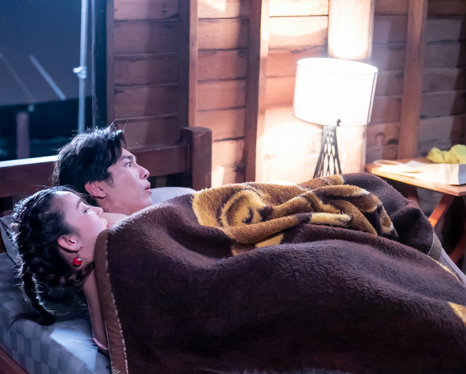 เมื่อผู้กำกับฯ สั่งเคลื่อนกล้อง สองนักแสดงก็เล่นไปตามบทไหลลื่นกันทีเดียว จนถึงคิวที่ สาวขวัญ ต้องร้องกรี๊ดดด และเต้นไปทั่วบ้าน และกระโจนเข้าหา หนุ่มมิว ทั้งคู่ล้มไปที่เตียง ผู้กำกับฯ ก็ยังไม่สั่งคัท จนถึงให้คิว สาวชาล็อต วิ่งขึ้นมาเห็นภาพบาดตา แล้วก็วิ่งกลับลงไป งานนี้ยังไม่จบนะจ้ะ!!!