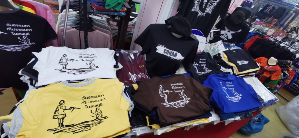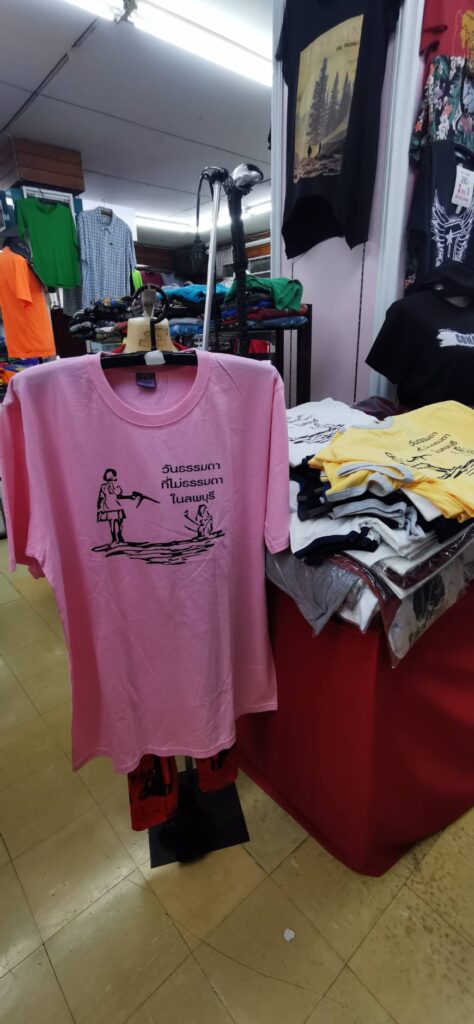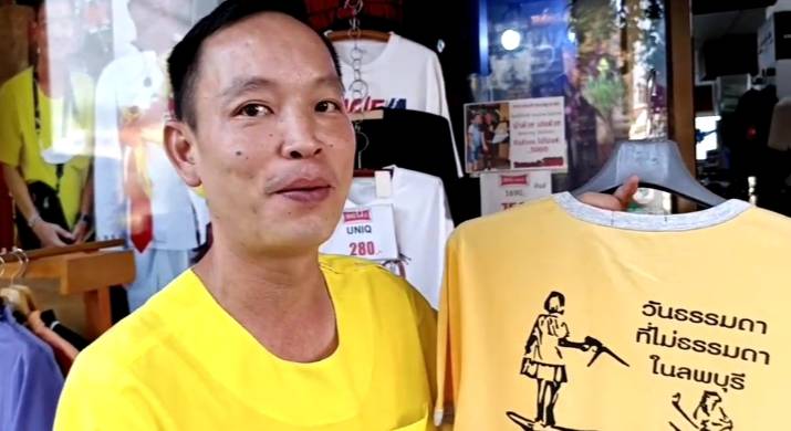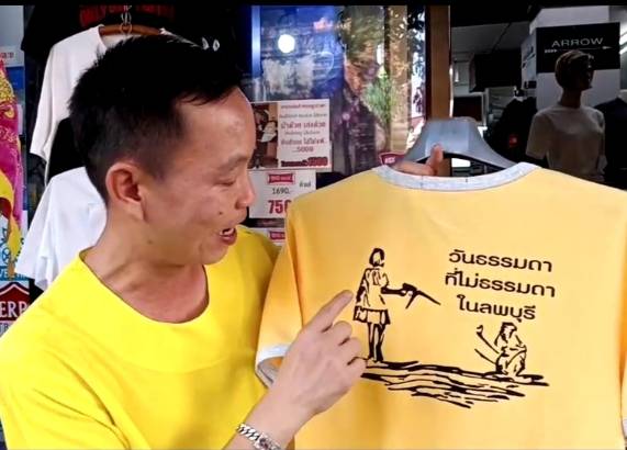 ด้าน นายศิริชัย อัมพร เจ้าของร้านสกายเวย์ ลพบุรี ได้เปิดเผยกับผู้สื่อข่าวตอนหนึ่งว่า ตนเองได้เดินทางไปซื้อ เสื้อยืดคอกลมสีน้ำเงิน พิมพ์ภาพลายเส้น เด็กหญิงถือปืนฉีดน้ำไล่ลิง มาใส่คู่กับกางเกงลิงที่ โด่งดังมาใส่คู่กันก็ดี