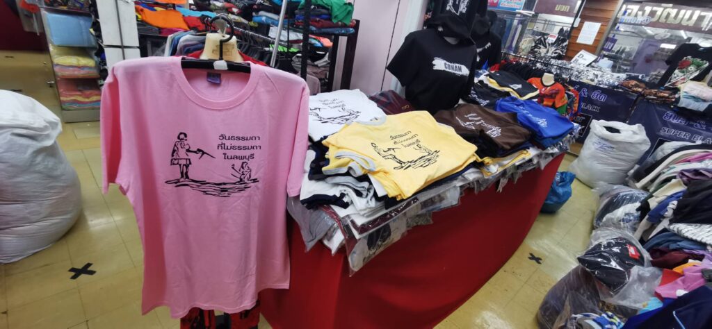 นายวัฒนา เปิดเผยเพิ่มเติมว่า ทางห้างประตูทองวัฒนามีเสื้อสีม่วงจำหน่ายอีกด้วย ตอนนี้ที่มีกระแสปกป้อง