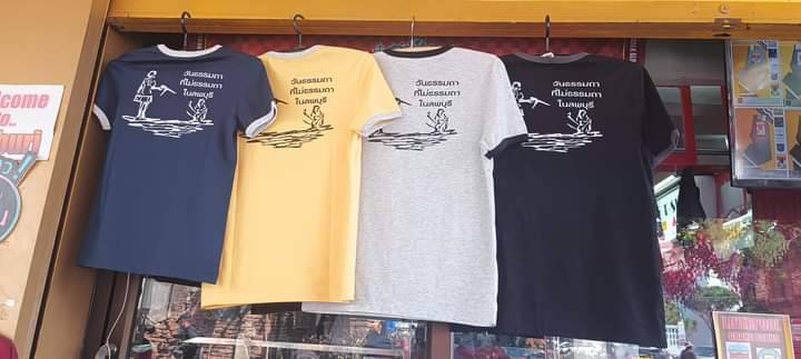 ซึ่งเป็นแนวคิดตัวของผมเอง ผมจึงทำเสื้อยืดคอกลม ซึ่งเป็นเนื้อผ้าดีมีคุณภาพ เป็นเนื้อผ้าเกรด a ทางห้างประตูทองวัฒนา