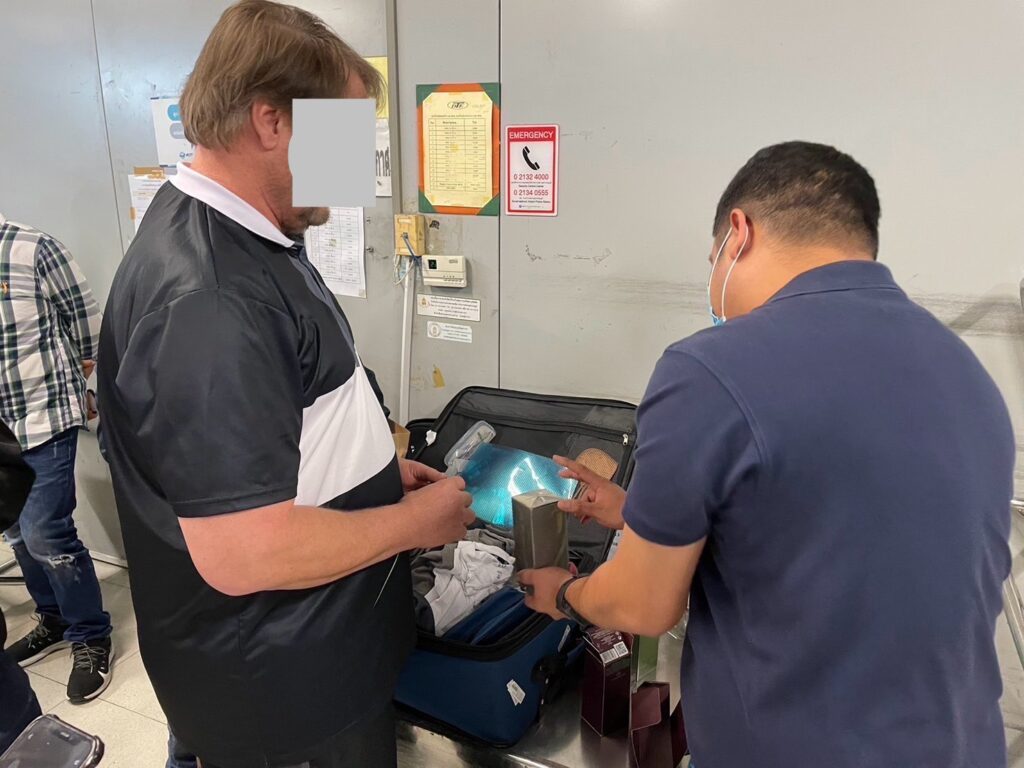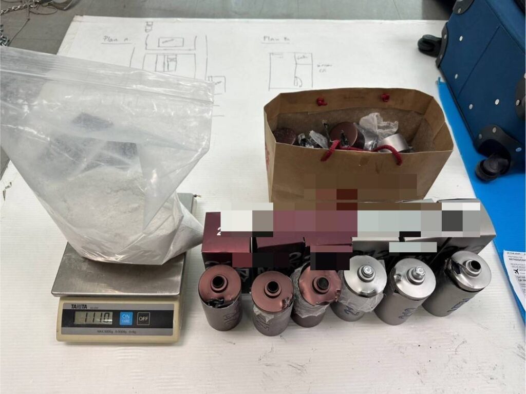 ภายในกระเป๋าสัมภาระ น้ำหนักรวมสิ่งห่อหุ้ม ประมาณ 1,100 กรัม มูลค่ากว่า 3,300,000 บาท โดยชุดปฏิบัติการ AITF จะดำเนินการขยายผลต่อไป