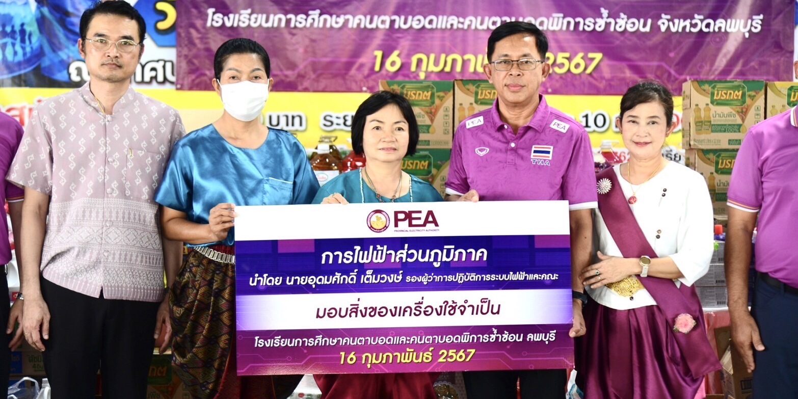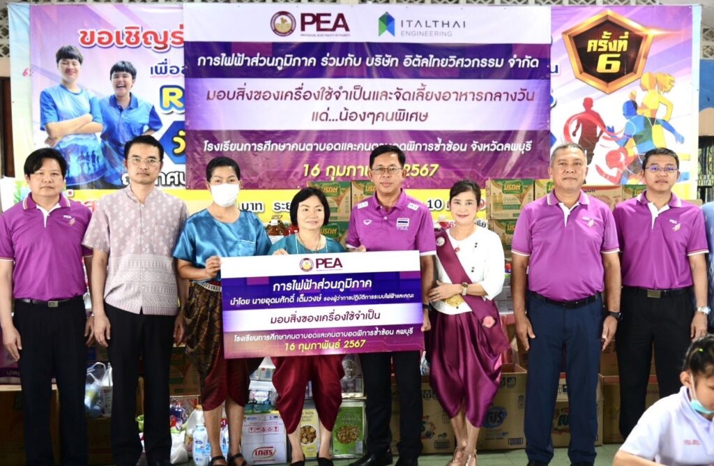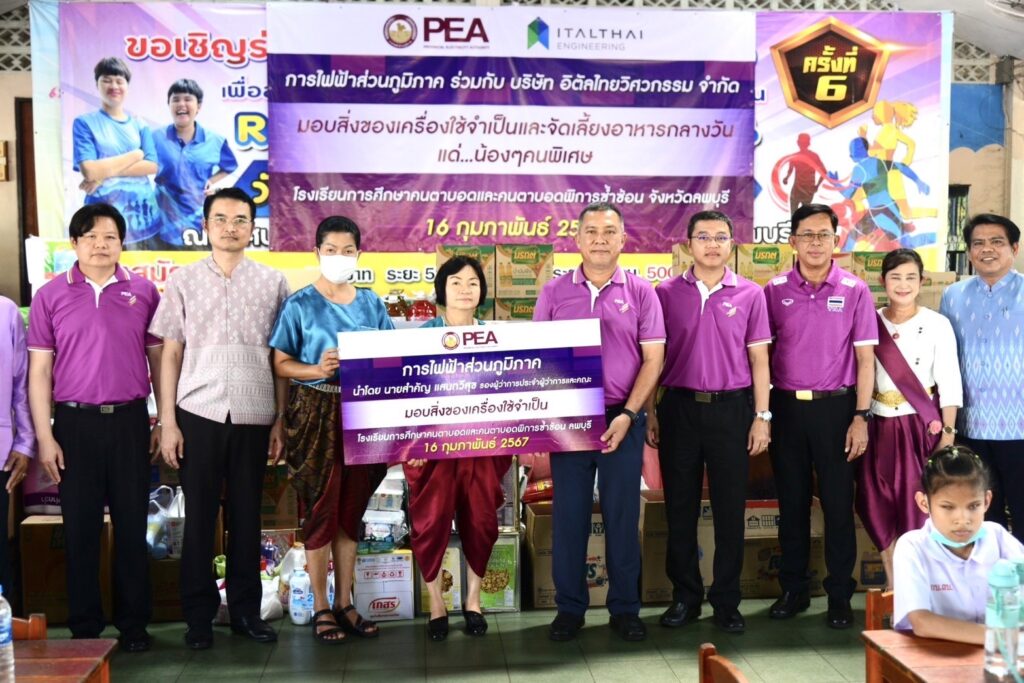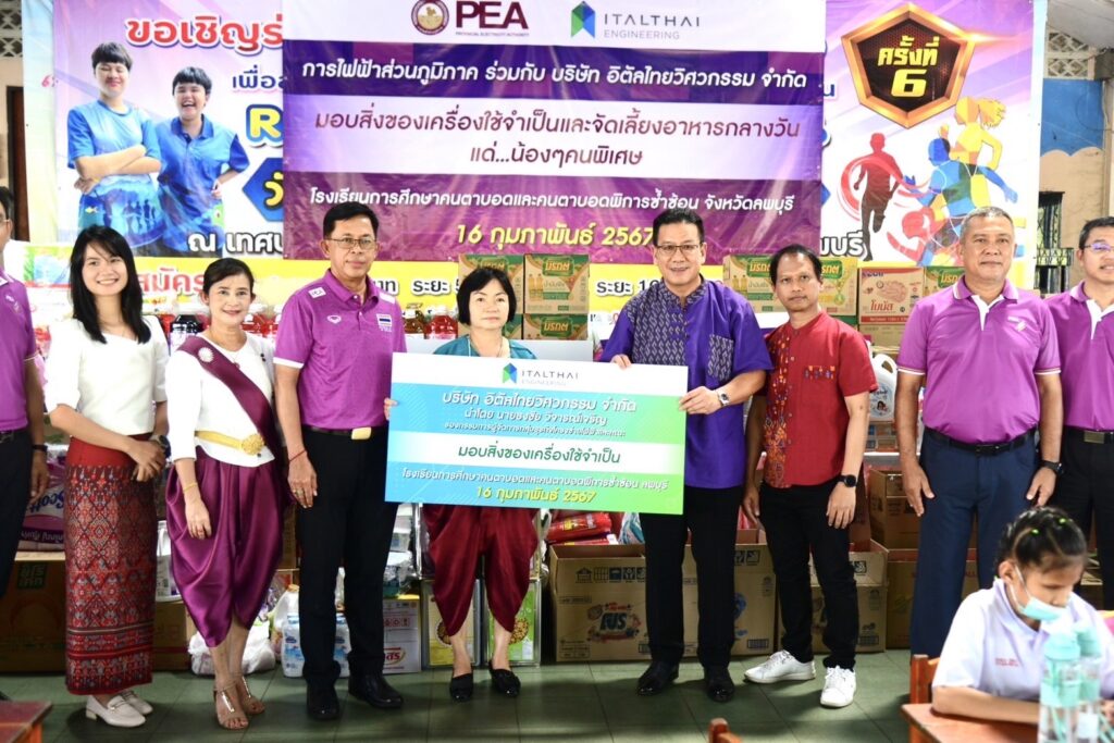วันศุกร์ที่ 16 กุมภาพันธ์ 2567 นายอุดมศักดิ์ เต็มวงษ์ รองผู้ว่าการปฏิบัติการระบบไฟฟ้า การไฟฟ้าส่วนภูมิภาค พร้อมด้วย นายสำคัญ แสนทวีสุข รองผู้ว่าการประจำผู้ว่าการ การไฟฟ้าส่วนภูมิภาค พร้อมด้วยนายธงชัย วิจารณ์เจริญ รองกรรมการผู้จัดการกลุ่มธุรกิจโครงข่ายไฟฟ้า และนายอดิเรก ปักเข็ม ผู้อำนวยการฝ่าย Smart Substation บริษัท อิตัลไทยวิศวกรรม จำกัด ร่วมมอบสิ่งของเครื่องใช้ที่จำเป็น และจัดเลี้ยงอาหารกลางวัน แด่น้องๆ คนพิเศษ โรงเรียนการศึกษาคนตาบอดและคนตาบอดพิการซ้ำซ้อน อ.เมือง จ.ลพบุรี โดยมี นายยงยุทธ โพธิ์ทอง ผู้ช่วยผู้ว่าการปฏิบัติการระบบไฟฟ้า (ก่อสร้างโครงข่ายระบบไฟฟ้า) นายสนฑ์ประเวศน์ ปั้นงา รองผู้อำนวยการฝ่ายวิศวกรรมและบริการ การไฟฟ้าส่วนภูมิภาค เขต 3 (ภาคเหนือ) จ.ลพบุรี คณะผู้บริหารและพนักงานการไฟฟ้าส่วนภูมิภาค และบริษัทอิตัลไทยวิศวกรรมจำกัด ร่วมกิจกรรม และส่งมอบให้แก่ น.ส.ดวงหฤษฏ์ ภูแพง ผู้อำนวยการโรงเรียนและ น.ส.อิสรีย์ วงศ์ทอง ผู้จัดการโรงเรียนฯ เพื่อนำไปใช้งานต่อไป