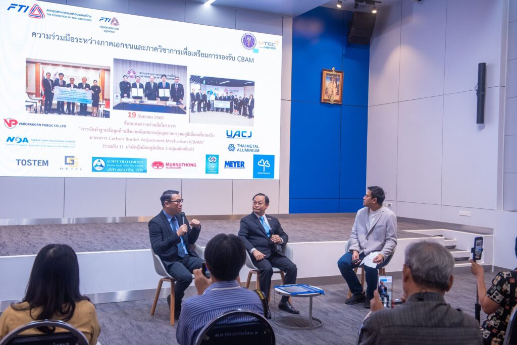 ประธานกิตติมศักดิ์กลุ่มอุตสาหกรรมอลูมิเนียม กล่าวย้ำว่า ทุกกลุ่มอุตสาหกรรมควรต้องเร่งศึกษามาตรฐานของกลุ่มอุตสาหกรรมของตนเองโดยด่วนตั้งแต่บัดนี้ และต้องเร่งมือหาองค์ความรู้เพื่อรับมือกับมาตรการ CBAM อย่างต่อเนื่องและพร้อมปรับตัวตลอดเวลา เพราะแม้กลุ่มอุตสาหกรรมอลูมิเนียมเตรียมตัวมาล่วงหน้าแล้ว ก็เกือบจะตกขบวนการปรับตัวให้เข้ากับมาตรการดังกล่าว โดยในช่วงปี 2567-2568 จะเป็นช่วงที่ CBAM ยังไม่เก็บเงินก็จริง แต่กลุ่มอุตสาหกรรมที่ได้รับผลกระทบต้องเตรียมประเมินผลไว้ ซึ่งทางสหภาพยุโรปเคร่งครัดในเรื่องการกรอกข้อมูลให้พร้อมและถูกต้อง และควรมีข้อมูลอ้างอิงที่เชื่อถือได้ ทั้งนี้จากที่ดำเนินการร่วมกับ เอ็มเทค (สวทช.) มาอย่างต่อเนื่อง เชื่อว่าประเทศไทยตอนนี้ ไม่มีหน่วยงานใดที่มีข้อมูลความพร้อมเท่ากับ เอ็มเทค สวทช. ที่ทำฐานข้อมูลพื้นฐาน (Background data) นี้ไว้รองรับอุตสาหกรรมต่างๆ