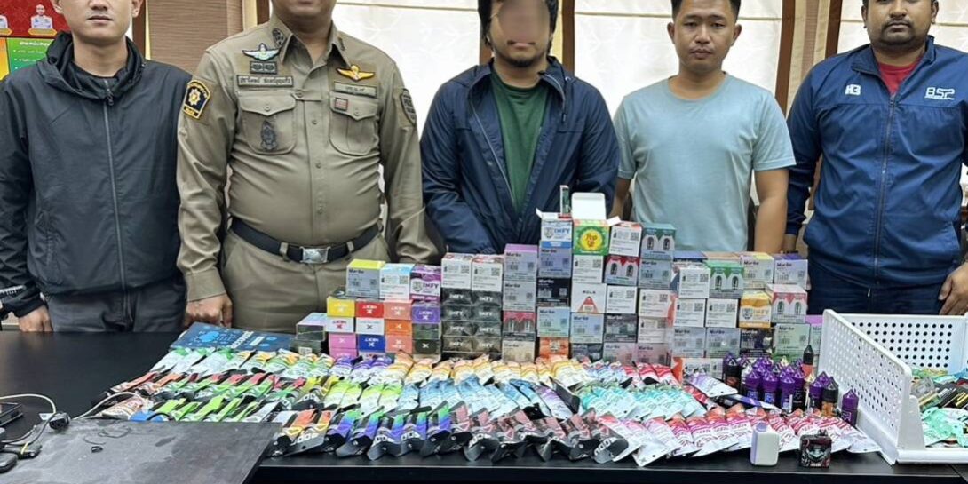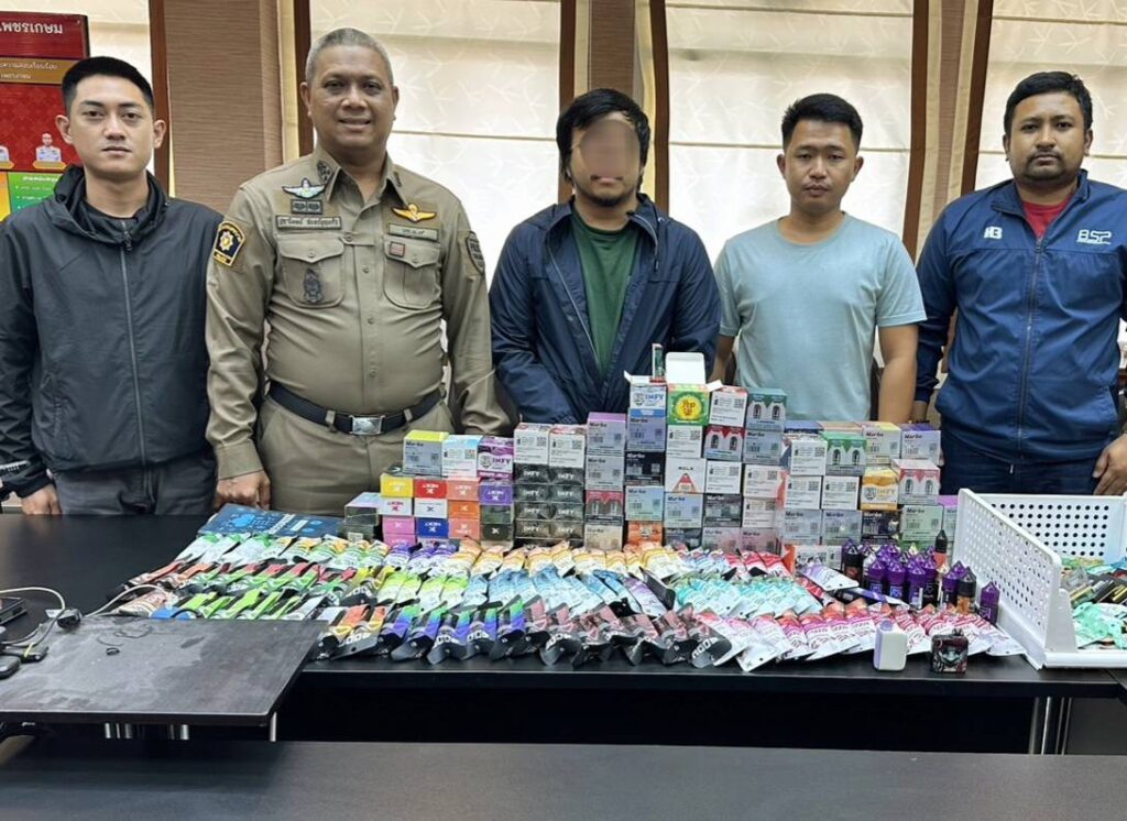 พร้อมด้วยของกลาง คือ บุหรี่ไฟฟ้า 1,000 ชิ้น