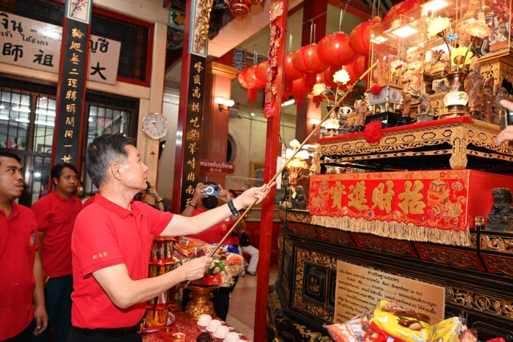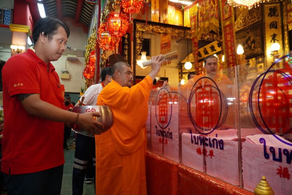 วานนี้ (วันเสาร์ที่ 17 กุมภาพันธ์ 2567 เวลา 23.00 น.) มูลนิธิป่อเต็กตึ๊ง นำโดย นายสัก กอแสงเรือง รองประธานกรรมการ นายวิชิต ชินวงศ์วรกุล รองประธานกรรมการ นายจารุรัตน์ คุณัตถานนท์ กรรมการและเหรัญญิก พร้อมด้วย คณะกรรมการ คณะผู้ช่วยกรรมการ คณะผู้บริหาร อาสาสมัคร รวมทั้งศิษยานุศิษย์ และสาธุชนจำนวนมาก ร่วมในพิธีเวียนธูปศักดิ์สิทธิ์ เพื่อตั้งจิตอธิษฐานเทพยดาฟ้าดิน (เจ้าแห่งสวรรค์) และหลวงปู่ไต้ฮง ช่วยดลบันดาลให้ประสบโชคดีตลอดปีใหม่ พร้อมกับสรรเสริญและขอพรจากเทพเจ้า ให้ตนเอง และครอบครัว รวมถึงประเทศชาติ อยู่เย็นเป็นสุข ปราศจากโรคภัย เฮงๆ ตลอดปีมังกรทอง (มะโรง) ณ ศาลเจ้าไต้ฮงกง มูลนิธิป่อเต็กตึ๊ง พลับพลาไชย