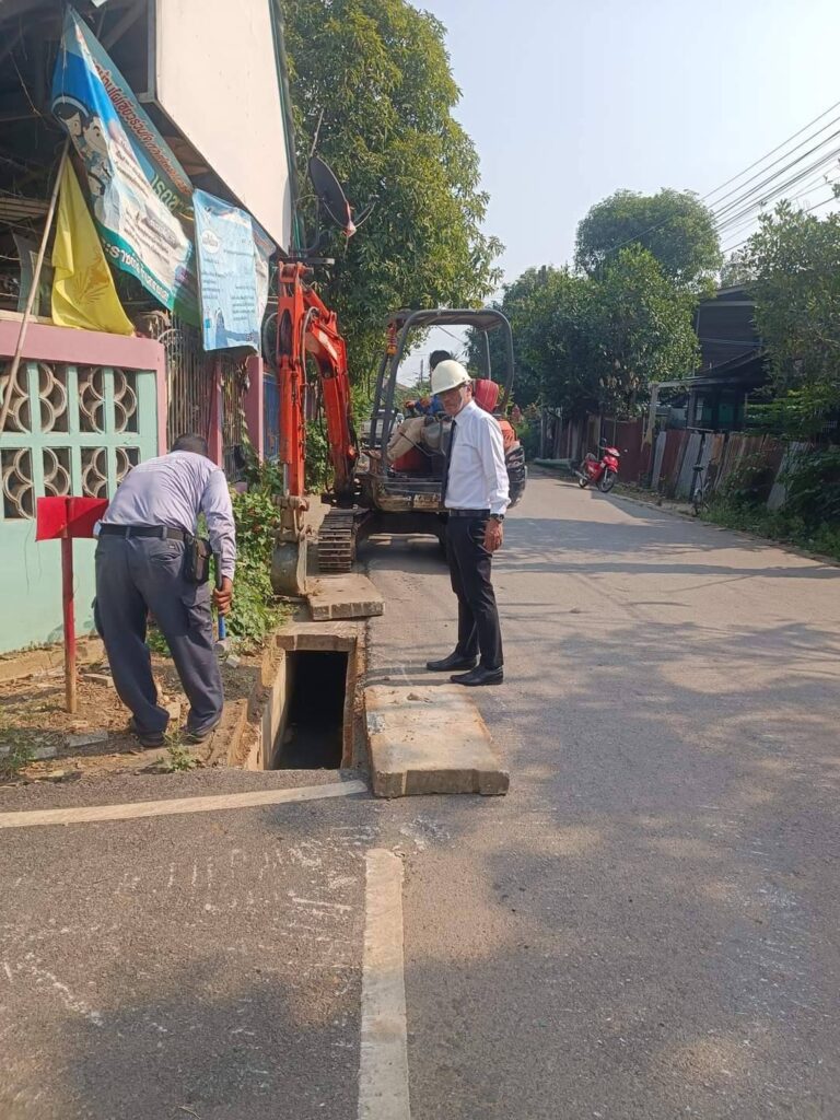 นายกเทศมนตรีเทศบาลตำบลทุ่งยั้ง นายเขมชาติ มั่นเจ๊กลงพื้นที่ตรวจสอบการทำงานและความคืบหน้าด้วยตนเอง ในการดำเนินงานเพื่อป้องกันท่อระบายน้ำอุดตัน และปัญหาน้ำไหลระบายไม่ทันเอ่อท่วมบ้านเรือน พร้อมกับเทคอนกรีตทำฝาท่อระบายน้ำทดแทนฝาท่อเก่าที่ชำรุดบางส่วน ณ