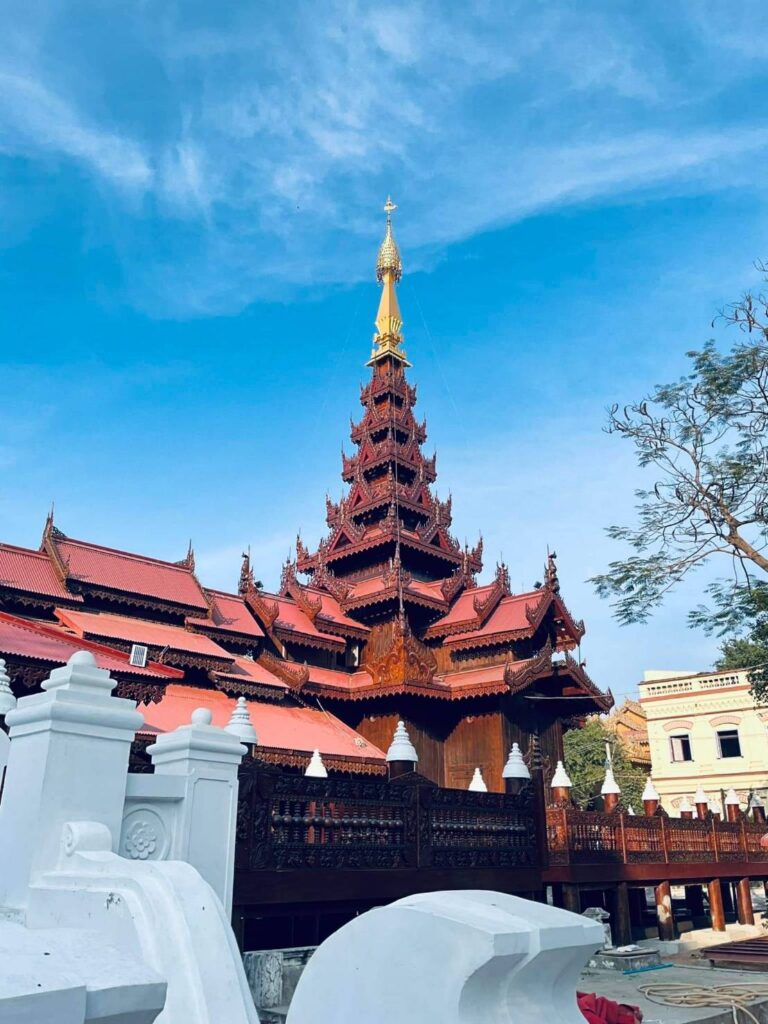 พระอุโบสถไม้สักอายุกว่า 160 ปีหลังนี้ สร้างขึ้นจากพระราชดำริของพระเจ้ามินดง กษัตริย์แห่งราชวงศ์คองบอง มีพุทธศิลป์แบบเมียนมาที่งดงาม โดดเด่นด้วยลวดลายการสลักไม้อย่างวิจิตร อลังการ และได้พระราชทานถวายแด่สะยาดอร์ จาการะ พระมหาเถระผู้ก่อตั้งนิกายชเวจิน ซึ่งเป็นหนึ่งในเก้านิกายหลักของประเทศเมียนมา