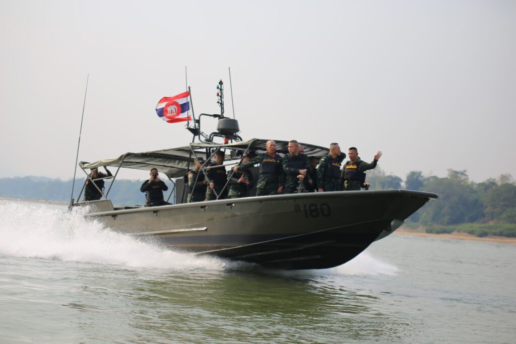 .ต่อมา ได้เดินทางไปยัง สถานีเรือเชียงคาน หน่วยเรือรักษาความสงบเรียบร้อยตามลำแม่น้ำโขง เขตหนองคาย อ.เชียงคาน จ.เลย ได้รับฟังการบรรยายสรุปผลการปฏิบัติภารกิจในห้วงที่ผ่านมา จากนั้น ร่วมลาดตระเวนทางน้ำ ตามลำแม่น้ำโขง มอบนโยบาย ข้อเน้นย้ำ และมอบแนวทางการปฏิบัติภารกิจ เพิ่มมาตรการในการปฏิบัติจุดเฝ้าระวังช่องทางธรรมชาติ รวมถึงการเพิ่มกำลังลาดตระเวนทั้งทางบก และทางน้ำ ตลอด 24 ชั่วโมง พร้อมทั้งมอบสิ่งของบำรุงขวัญ ให้กับเจ้าหน้าที่ที่ปฏิบัติภารกิจในพื้นที่ชายแดน เพื่อเป็นขวัญและกำลังใจให้กับกำลังพลในการปฏิบัติภารกิจต่อไป