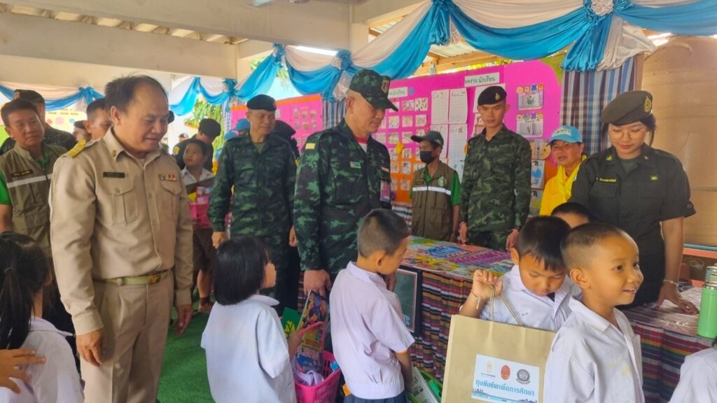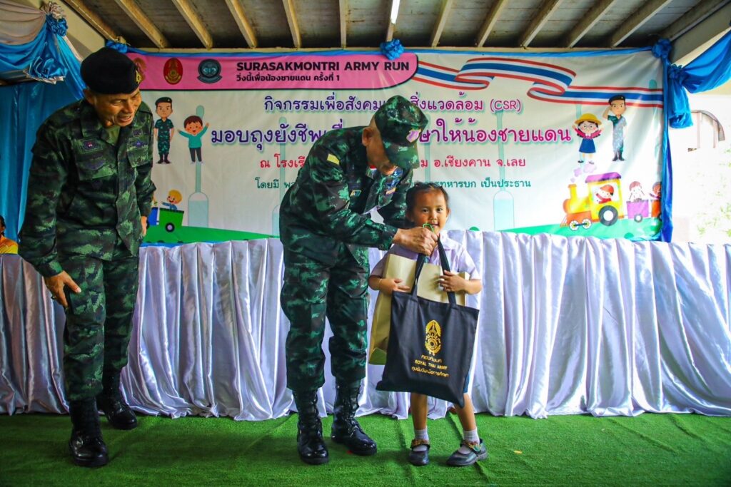 วันที่ 18 กุมภาพันธ์ 2567 พลเอก เจริญชัย หินเธาว์ ผู้บัญชาการทหารบก/ผู้บัญชาการศูนย์ปฏิบัติการกองทัพบก ลงพื้นที่ตรวจเยี่ยมพบปะให้กำลังใจคณะครู และเด็กๆนักเรียนโรงเรียนบ้านคกงิ้ว และ โรงเรียนเพียงหลวง 18 ต.ปากตม อ.เชียงคาน จ.เลย ได้มอบถุงยังชีพเพื่อการศึกษา , อุปกรณ์กีฬา , อุปกรณ์การเรียนการสอน , มอบขนม และไอศกรีม เพื่อนำไปใช้ประกอบการเรียนการสอนตามหลักสูตรของโรงเรียน ปลูกฝังให้เด็กและเยาวชนได้เรียนรู้ เพื่อต้องการให้เด็ก และเยาวชนรู้จักใช้เวลาให้เกิดประโยชน์ และห่างไกลจากยาเสพติด แทนความห่วงใยจากกองทัพบก โดยในการจัดหาถุงยังชีพเพื่อการศึกษา อุปกรณ์กีฬา และสิ่งของที่จำเป็นอื่นๆ ในครั้งนี้ เกิดจากที่กองกำลังสุรศักดิ์มนตรี ได้จัดกิจกรรม Surasakmontri Army Run 2024 “วิ่งนี้เพื่อน้องชายแดน” ครั้งที่ 1 ที่ผ่านมา ได้มอบผ้าห่มให้กับ นักเรียน ผู้ปกครอง และประชาชน ในพื้นที่ ที่ได้รับผลกระทบจากภาวะอากาศหนาว เป็นการลดภาระค่าใช้จ่ายในครัวเรือนอีกด้วย โดยมี พลโท บุญสิน พาดกลาง แม่ทัพน้อยที่ 2, พลตรี นรธิป โพยนอก ผู้บัญชาการกองกำลังสุรศักดิ์มนตรี/ผู้อำนวยการรักษาความมั่นคงภายในภาค 2 ส่วนแยก 1, พลตรี พุทธิวัฒน์ สิริพงศ์พล ผู้บัญชาการมณฑลทหารบกที่ 28 และผู้บังคับหน่วยในพื้นที่ หน่วยงานราชการในพื้นที่ร่วมกันจัดกิจกรรมในครั้งนี้
