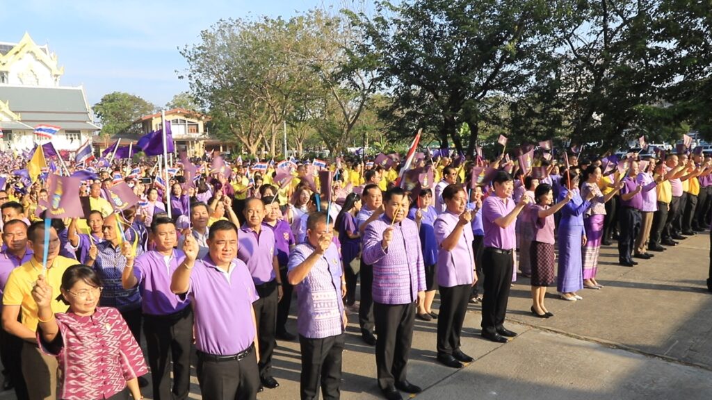 วันที่ 19 กุมภาพันธ์ 2567 เวลา 08.00 น. ที่ศาลากลางจังหวัดลพบุรี นายอำพล อังคภากรณ์กุล ผู้ว่าราชการจังหวัดลพบุรี พร้อมด้วยนางสุวจี ศิริปัญโญ นายกเหล่ากาชาดจังหวัดลพบุรี นำคณะผู้บริหาร ตุลาการ ศาล ทหาร ตำรวจ หัวหน้าส่วนราชการ ข้าราชการ เจ้าหน้าที่ กำนัน ผู้ใหญ่บ้าน ผู้นำท้องถิ่น และพสกนิกรชาวจังหวัดลพบุรีทุกหมู่เหล่า ประมาณ 1,500 คน แต่งกายชุดสีม่วงและสีเหลือง แสดงพลังความจงรักภักดี ถวายพระพรและถวายกำลังใจแด่สมเด็จพระกนิษฐาธิราชเจ้า กรมสมเด็จพระเทพรัตนราชสุดาฯ สยามบรมราชกุมารี