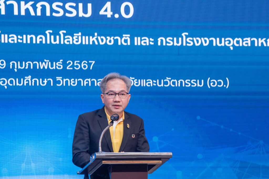 “ในปีที่ผ่านมา (สวทช.) มีความมุ่งมั่นตอบโจทย์การสนับสนุนโรงงานอุตสาหกรรมโดยเฉพาะ ตามนโยบายที่ นางสาวศุภมาส อิศรภักดี รัฐมนตรีว่าการกระทรวงการอุดมศึกษา วิทยาศาสตร์ วิจัยและนวัตกรรม (อว.) ได้มอบไว้คือ “เอกชนนำ รัฐสนับสนุน” จึงได้จัดตั้ง NSTDA Core Business – Industry 4.0 ขึ้นเพื่อเป็นแพลตฟอร์มให้โรงงานอุตสาหกรรมเข้ามาใช้บริการด้านต่างๆ ยกระดับสถานประกอบการสู่อุตสาหกรรม 4.0 โดยในปี 2566 มีการประเมิน Thailand i4.0 Index แล้วกว่า 200 โรงงาน ถ่ายทอดเทคโนโลยีแก่ภาคอุตสาหกรรม 140 โรงงาน และฝึกอบรมบุคคลากร 600 คน และในปีนี้ได้มีการพัฒนารูปแบบการประเมินแบบออนไลน์และทำได้ด้วยตนเอง (Online Self-Assessment) ซึ่งจะทำให้โรงงานอุตสาหกรรมเข้าถึงได้อย่างสะดวก รวดเร็ว และสามารถรู้ผลได้ทันทีเพื่อนำไปปรับปรุงยกระดับสถานประกอบการ อีกทั้งเชื่อมกลไกสนับสนุน และสิทธิประโยชน์ส่งเสริมการลงทุน เพื่อให้เกิดการลงมือปฏิบัติได้อย่างเป็นรูปธรรม”