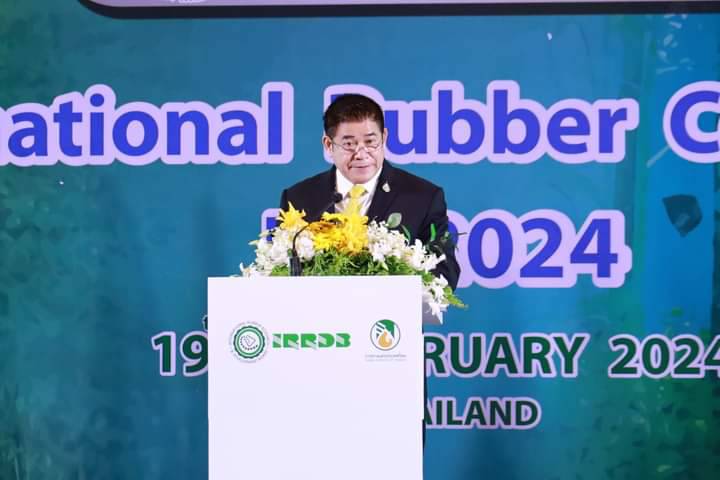 ร้อยเอกธรรมนัส พรหมเผ่า รัฐมนตรีว่าการกระทรวงเกษตรและสหกรณ์ กล่าวว่า ประเทศไทยในฐานะประเทศสมาชิกที่เป็นผู้นำด้านการผลิตยางพารา และมีประวัติศาสตร์การทำเกษตรอย่างยาวนาน มีความมุ่งมั่นในการพัฒนาการเกษตรเพื่อความยั่งยืน โดยให้ความสำคัญและตระหนักถึงการกำหนดทิศทางในอนาคตของสินค้ายางพารา ซึ่งเป็นพืชที่สำคัญทางเศรษฐกิจของประเทศไทยและของโลก เวทีประชุมวิชาการครั้งนี้จึงเป็นโอกาสอันดีในการแลกเปลี่ยนความคิดเห็น แบ่งปันความรู้ และความร่วมมือในการผลักดันให้เกิดความเปลี่ยนแปลงในอุตสาหกรรมยางพารา ภายใต้แนวคิด “จุดประกายเสริมสร้างนวัตกรรมยางพารามุ่งสู่อนาคต ที่ยั่งยืน” ผ่านการนำนวัตกรรม และสำรวจแนวคิดใหม่ๆ จากผู้เชี่ยวชาญที่มากประสบการณ์และนักวิจัยรุ่นเยาว์พัฒนาสู่แนวทางปฏิบัติที่ยั่งยืน รับมือกับความท้าทายในภาคอุตสาหกรรมยางพาราที่กำลังเผชิญ ทั้งการเปลี่ยนแปลงของภูมิอากาศและความเสื่อมโทรมของสิ่งแวดล้อม เพื่อสามารถขับเคลื่อนวงการยางพารา ทุกภาคส่วนในอนาคตได้อย่างมีประสิทธิภาพสูงสุด
