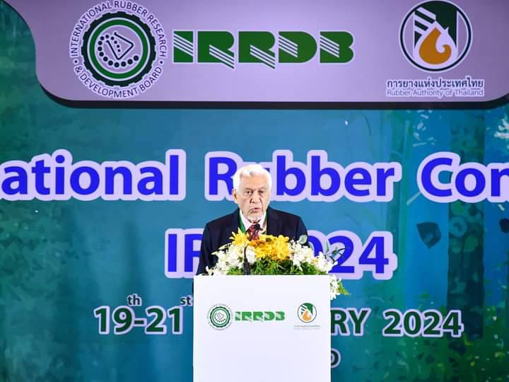 วันนี้ 19 ก.พ. 67 เวลา10.09 น. ณ โรงแรมดุสิตธานีพัทยา จ.ชลบุรี นายธวัชชัย ศรีทอง ผู้ว่าราชการจังหวัดชลบุรี ให้การต้อนรับ ร้อยเอกธรรมนัส พรหมเผ่า รัฐมนตรีว่าการกระทรวงเกษตรและสหกรณ์ โดยการยางแห่งประเทศไทย (กยท.) ร่วมกับสภาวิจัยและพัฒนายางระหว่างประเทศ (International Rubber Research and Developrent Board: IRRDB) เปิดเวทีการประชุมวิชาการยางระหว่างประเทศ (IRRDB International Rubber Conference : IRC 2024) ภายใต้แนวคิด “จุดประกายเสริมสร้างนวัตกรรมยางพารามุ่งสู่อนาคตที่ยั่งยืน” มุ่งผลักดันงานวิจัย – นวัตกรรม สู่การพัฒนาวงการยางตลอดห่วงโช่อุปทาน โดยได้รับเกียรติจาก ร้อยเอก ธรรมนัส พรหมเผ่า รัฐมนตรีว่าการกระทรวงเกษตรและสหกรณ์ เป็นประธานเปิดการประชุมฯพร้อมมอบแนวทางขับเคลื่อนอุตสาหกรรมยาง รับมือความท้าทายในทุกมิติ