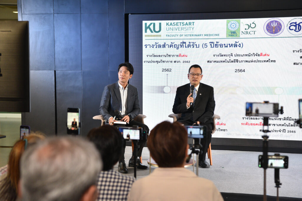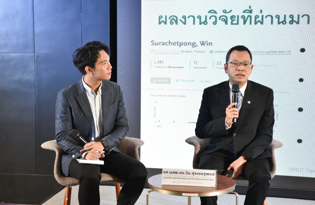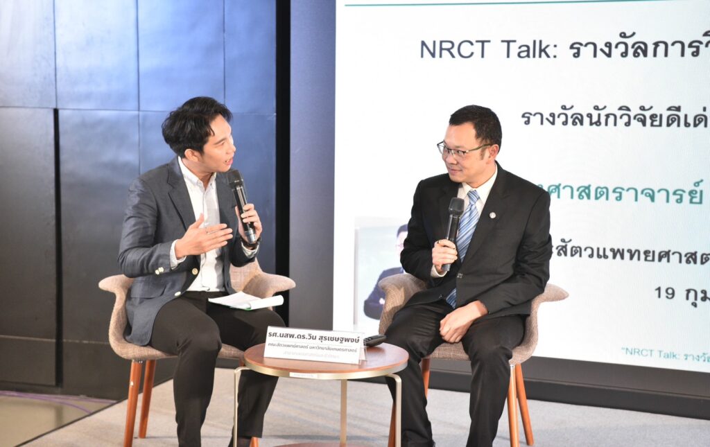 ดร.วิภารัตน์ฯ กล่าวว่า (วช.) จัดกิจกรรม “NRCT Talk นักวิจัยดีเด่นแห่งชาติ ประจำปี 2567 ครั้งที่ 2” เพื่อเชิดชูเกียรตินักวิจัยไทยที่มีผลงานโดดเด่น สร้างคุณูปการให้กับวงวิชาการและประเทศชาติ รวมทั้งเป็นกิจกรรมที่ส่งเสริมการสร้างแรงจูงใจของนักประดิษฐ์ และนักวิจัยในอันที่จะพัฒนานวัตกรรมทางความคิด และภูมิปัญญาที่เป็นประโยชน์ สร้างความก้าวหน้าในศาสตร์แขนงต่างๆ โดยในปีนี้ (วช.) ได้มอบรางวัลให้กับ รองศาสตราจารย์ นายสัตวแพทย์ ดร.วิน สุรเชษฐพงษ์ แห่ง คณะสัตวแพทยศาสตร์ มหาวิทยาลัยเกษตรศาสตร์ เป็นนักวิจัยดีเด่นแห่งชาติ สาขาเกษตรศาสตร์และชีววิทยา ประจำปี 2567 ซึ่งรองศาสตราจารย์ นายสัตวแพทย์ ดร.วิน สุรเชษฐพงษ์ ได้อุทิศตนเพื่องานวิจัยอย่างต่อเนื่อง มีผลงานศึกษาวิจัยเรื่อง “โรคไวรัสอุบัติใหม่ในปลานิลและปลานิลแดง” เช่น โรคไวรัสทิลาเปียเลค ผลการศึกษาวิจัยครอบคลุมตั้งแต่การค้นพบเชื้อไวรัสในฟาร์มปลานิลในประเทศไทย การศึกษากลไกและปัจจัยการก่อโรคของเชื้อไวรัส การศึกษาวิธีควบคุมป้องกันโรคภายในฟาร์ม รวมถึงการพัฒนาวัคซีนและวิธีทดสอบโรค องค์ความรู้และเทคโนโลยีได้ถูกถ่ายทอดไปสู่เกษตรกรเพื่อแก้ไขปัญหาการระบาดของเชื้อไวรัสภายในฟาร์มปลานิลและปลานิลแดง ผลงานวิจัยได้รับการยอมรับในวงวิชาการทั้งในประเทศและต่างประเทศ เช่น การได้รับเกียรติให้เป็นผู้เชี่ยวชาญ และที่ปรึกษาให้กับองค์การอาหารและเกษตรแห่งสหประชาชาติ (FAO) เป็นต้น
