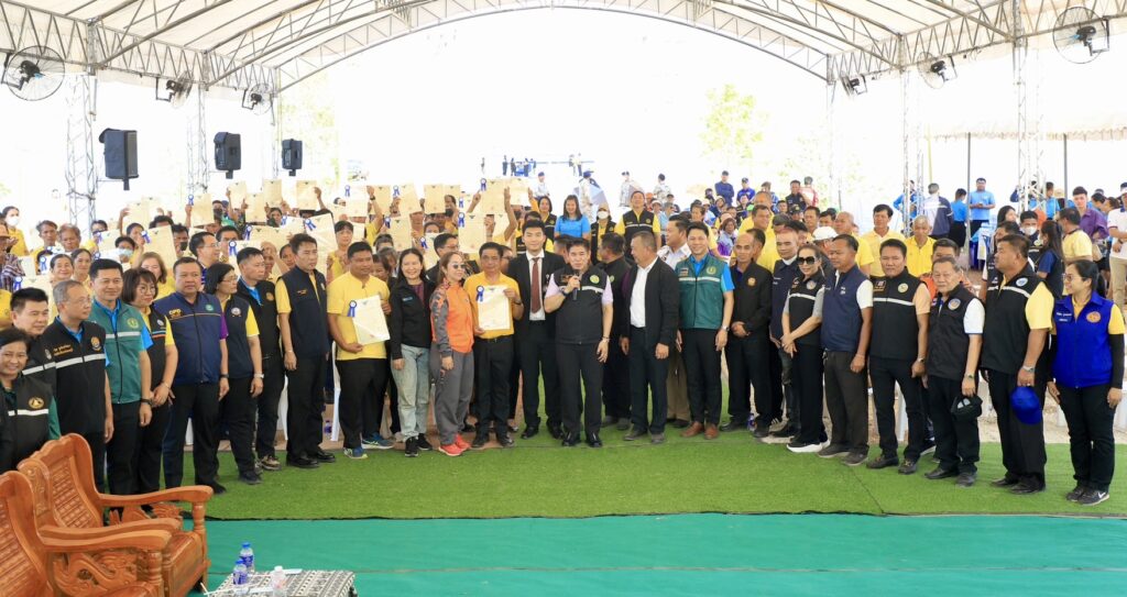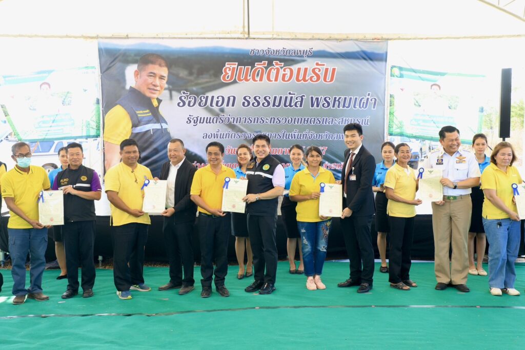 วันที่ 21 กุมภาพันธ์ 2567 เวลา 15.00 น. ที่โครงการอ่างเก็บน้ำกุดตาเพชร ตำบลกุดตาเพชร อำเภอลำสนธิ จังหวัดลพบุรี ร้อยเอกธรรมนัส พรหมเผ่า รัฐมนตรีว่าการกระทรวงเกษตรและสหกรณ์ พร้อมคณะ ลงพื้นที่ตรวจราชการและมอบโฉนดเพื่อการเกษตร ให้กับพี่น้องเกษตรกรในพื้นที่อำเภอชัยบาดาล และอำเภอลำสนธิ จังหวัดลพบุรี โดยมี นายปรัชญา เปปะตัง รองผู้ว่าราชการจังหวัดลพบุรี พร้อมด้วยนายวรวงศ์ วรปัญญา สมาชิกสภาผู้แทนราษฎร เขต 5 จังหวัดลพบุรี นายเสริมชัย เซียวศิริถาวร ผู้อำนวยการสำนักงานชลประทานที่ 10 หัวหน้าส่วนราชการสังกัดกระทรวงเกษตรและสหกรณ์ ข้าราชการ เจ้าหน้าที่ และพี่น้องเกษตรกรกว่า 150 คนให้การต้อนรับ
