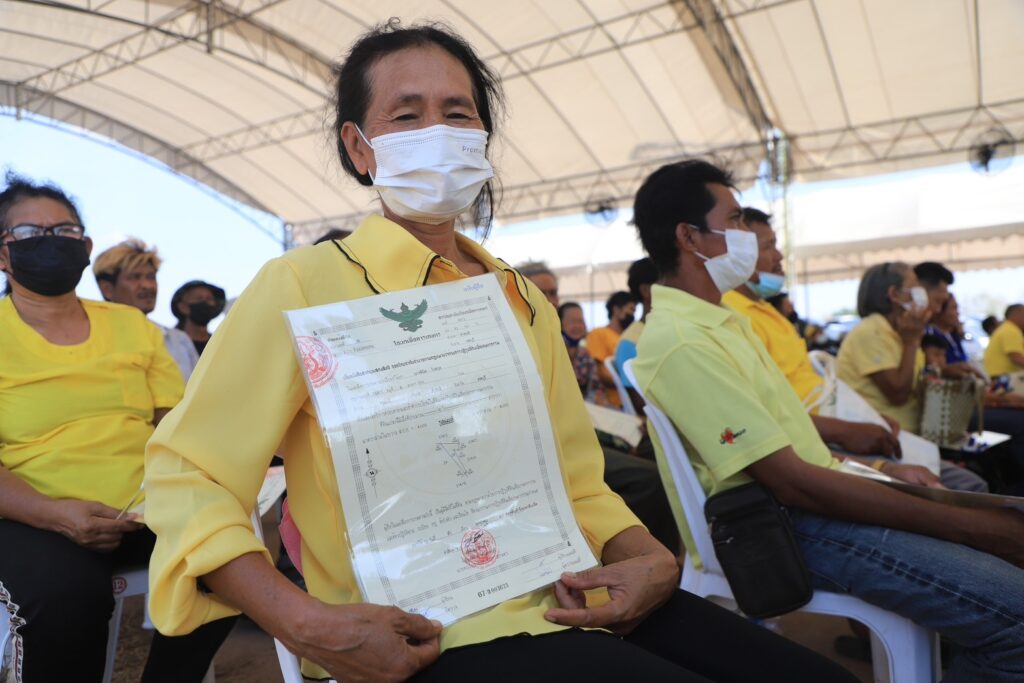จากนั้นได้มีพิธี มอบโฉนดให้กับพี่น้องเกษตรกรในพื้นที่อำเภอชัยบาดาล และอำเภอลำสนธิ จังหวัดลพบุรี จำนวน 80 ราย รวมเนื้อที่จำนวน 1,728 ไร่ 0 งาน 35 ตารางวาและได้ร่วมกันปล่อยพันธุ์สัตว์น้ำจืด จำนวน 200,000 ตัว ลงสู่อ่างเก็บน้ำกุดตาเพชร เพื่อเป็นการเพาะเลี้ยงพันธุ์สัตว์น้ำ