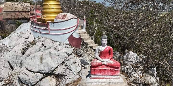 บนโบสถ์เก่าอายุกว้า200 ปี บนยอดเขาวัดถ้ำตะโก เทือกเขาสมอคอน