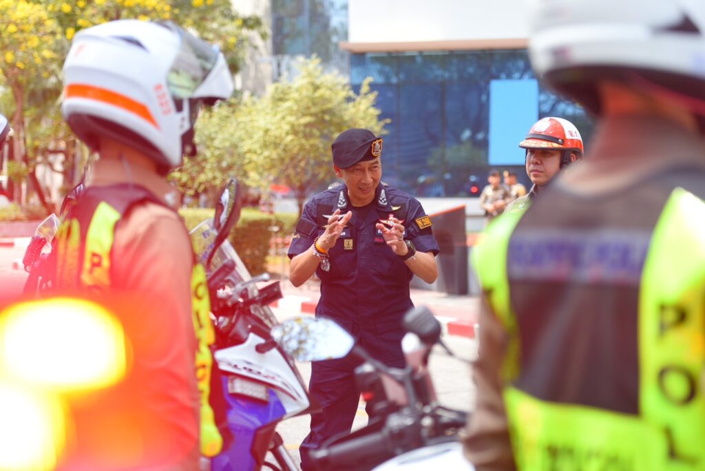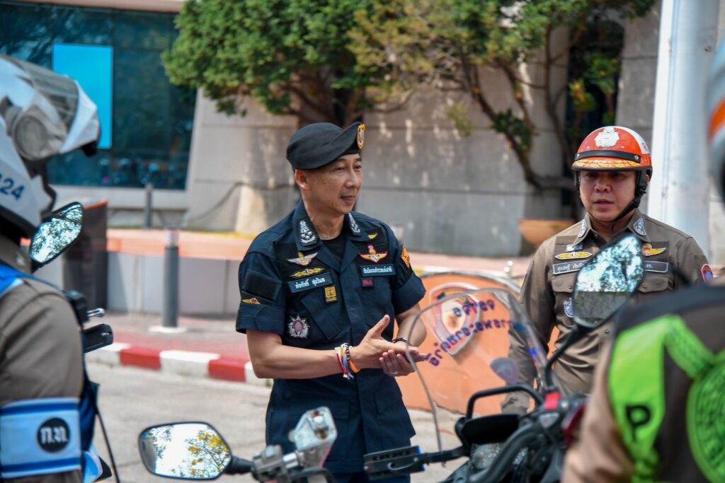 พล.ต.อ.ต่อศักดิ์ฯ กล่าวว่า การช่วยเหลือประชาชน นำผู้ป่วยหรืออวัยวะสำคัญให้ทันท่วงที ต้องใช้รถจักรยานยนต์เพื่อนำรถพยาบาล หรือการเข้าไปแก้ปัญหาบนท้องถนนที่มีการจราจรติดขัด แต่สีของรถจักรยานยนต์เป็นสีขาวทั่วไปทำให้ประชาชนส่วนใหญ่ไม่ค่อยทราบ จึงแนะนำให้ติดสติกเกอร์แบบสะท้อนแสงสีเขียวมะนาว ซึ่งมีการวิจัยจากต่างประเทศพบว่าจะทำให้ประชาชนจะมองเห็นในระยะ 500 เมตร เมื่อประชาชนมองเห็นรถจักรยานยนต์สีเขียวมะนาวผ่านมา จะทำให้รู้ว่าเป็นรถฉุกเฉินจะต้องเปิดทางให้