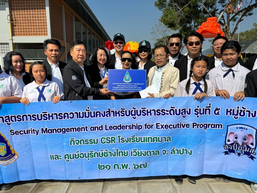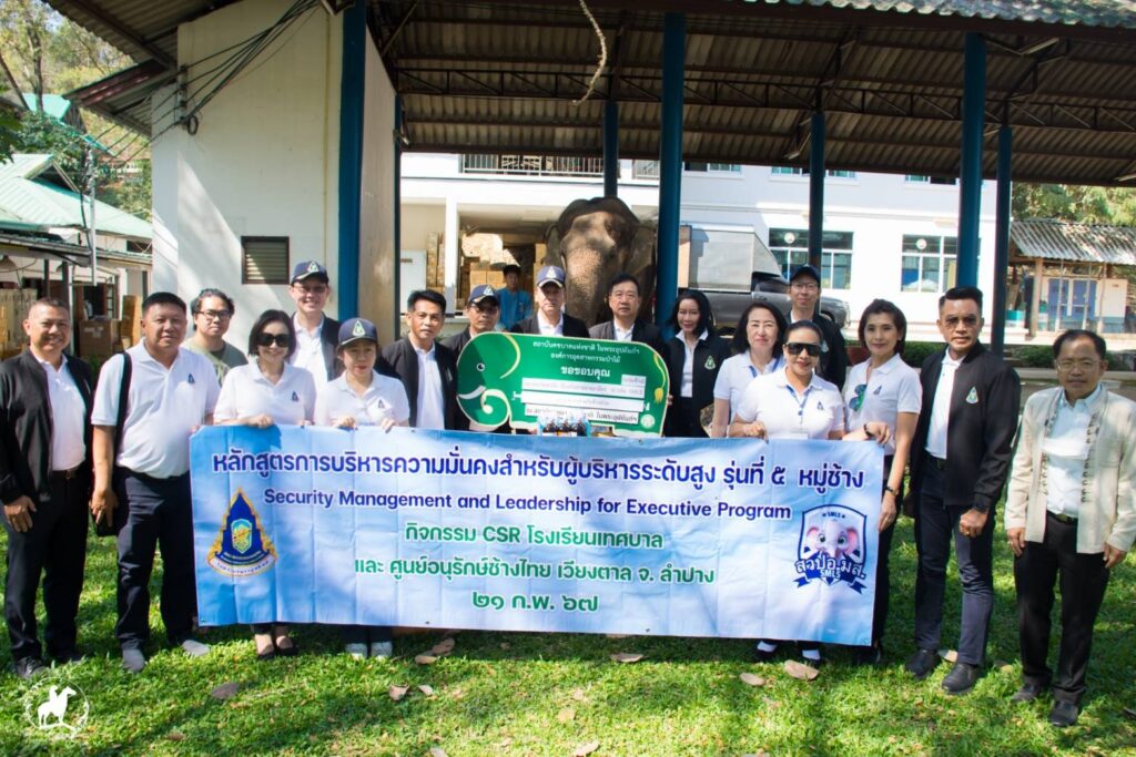 วันพุธที่ 21 กุมภาพันธ์ 2567 นักศึกษาหลักสูตรการบริหารความมั่นคงสำหรับผู้บริหารระดับสูง (สวปอ.มส.SML) กลุ่มช้าง รุ่นที่ 5 สมาคมวิทยาลัยป้องกันราชอาณาจักร ในพระบรมราชูปภัมภ์โดยการนำของ พล.ต.นรินทรักษ์ เชษฐศิริ ประธานนักศึกษาฯ นายประสิทธิชัย วีระยุทธวิไล ประธานนักศึกษาฯ กลุ่มช้าง รุ่นที่ 5 และคณะนักศึกษาฯ กลุ่มช้าง รุ่นที่ 5 ได้บริจาคเงินสด ยาและเวชภัณฑ์ รวมเป็นเงินจำนวนทั้งหมด 64,995 บาท (หกหมื่นสี่พันเก้าร้อยเก้าสิบห้าบาทถ้วน) โดยแยกรายละเอียด ดังนี้ มอบเงินสด จำนวน 25,000 บาท, อุปกรณ์เวชภัณฑ์ยารักษาโรค จำนวน 39,995 บาท เพื่อใช้ในการรักษาช้าง ให้กับโรงพยาบาลช้าง ศูนย์อนุรักษ์ช้างไทย ซึ่งมีจำนวนช้างในการดูแล แยกเป็นช้างประจำ จำนวน 126 เชือก ช้างป่วย 15 เชือก โดยมีคณะเจ้าหน้าที่โรงพยาบาลช้าง ศูนย์อนุรักษ์ช้างไทย (สถาบันคชบาลแห่งชาติ ในพระอุปถัมภ์ฯ องค์การอุตสาหกรรมป่าไม้) เป็นผู้รับมอบ
