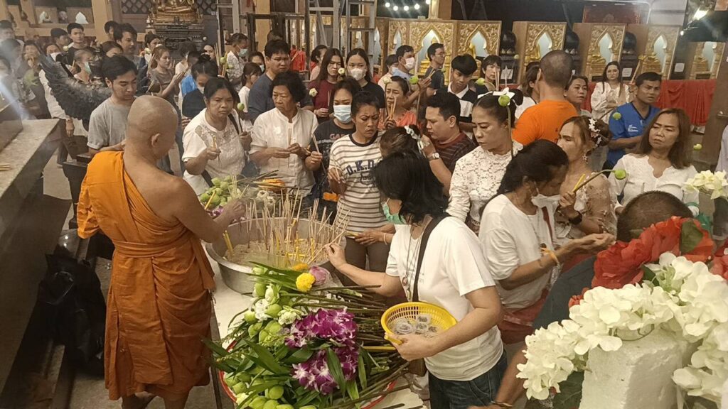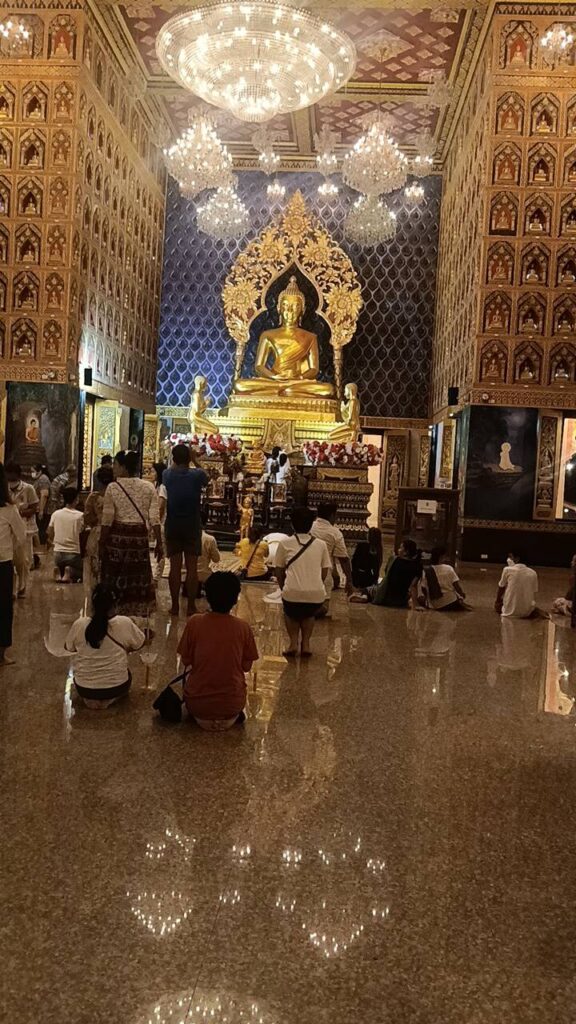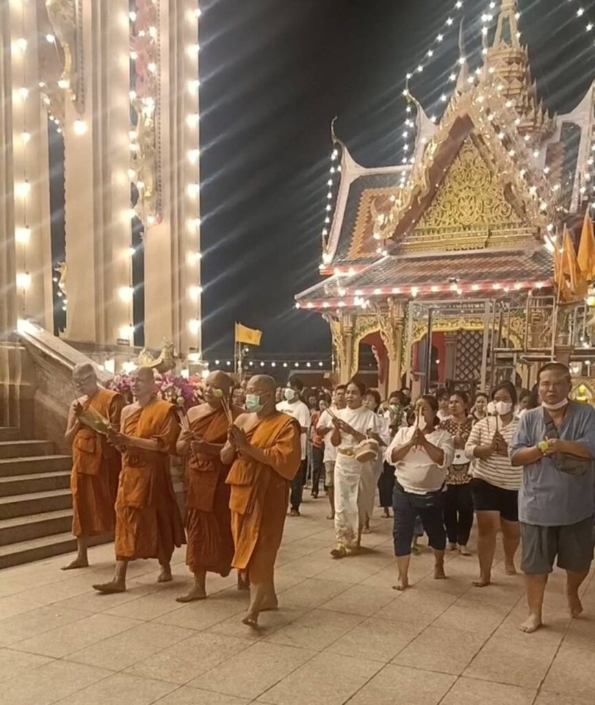 เมื่อเวลา 19.30 น.วันเสาร์ที่ 24 กุมภาพันธ์ 2567 ตรงกับวันพระขึ้น 15 ค่ำ เดือน 3 วัดป้อมวิเชียรโชติการามพระอารามหลวง พระราชาปริยัติคุณ เจ้าอาวาส ประกอบศาสนกิจเนื่องในวันมาฆะบูชา เป็นวันสำคัญทางพระพุทธศาสนา ตามีประวัติ วันมาฆะบูชา เริ่มต้นภายหลังที่พระพุทธเจ้าได้เสด็จเดินทางไปปฎิบัติพุทธกิจ แสดงธรรม ณ ถ้ำสุกรชาตาเสร็จสิ้นแล้ว พระองค์เดินทางกลับมาประทับที่วัดเวฬุวัน เมืองราชคฤ แคว้นมคธ เมื่อหลังจากที่พระองค์ ได้ทรงตนัสรู้ไปเป็รเวลา 9 เดือนในวันที่พระองค์เสด็จกลับมาประทับ ตรงกับวันเพ็ญ เดือนมาฆะหรือเดือน 3ในเวลาบ่าย พระอรหันตสาวก ได้เดินทางมาเข้าเฝ้าพร้อมกันโดยมิได้นัดหมาย ณ สถานที่ประทับของพระพุทธเจ้า อันประกอบไปด้วยคณะศิษย์ของ ชฏิล 3 พี่น้องจำนวน 1,000 รูป และคณะของพระอัครสาวก จำนวน 250 รูป รวมจำนวนได้ 1,250 รูป โดยจำนวนนี้มิได้นับรวมชฏิล 3 พี่น้องและอัครสาวกทั้ง 2 ซึ่งการเดินทางมาเข้าเฝ้าพระพุทธเจ้าในวันมาฆะฤกษ์นั้นับเป็นการเข้าประชุมของพระอรหันต์ผู้เป็นมหาสังคนิบาติประกอบด้วย องค์ประกอบอัศจรรย์ทั้ง 4 ประการที่เรียกว่า จาตุรงคสันนิบาต โดยทางวัดป้อมวิเชียรโชติการาม พระอารามหลวง ได้จัดให้พุทธศาสนิกชนเวียนเทียนรอบพระอุโบสถ์จตุรมุข 2ชั้น ที่เพิ่งประกอบพิธีงานปิดทองฝังลูกนิมิตรไปเมื่อวันที่ 19 กุมภาพันธ์ 2567 ที่ผ่านมา