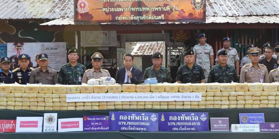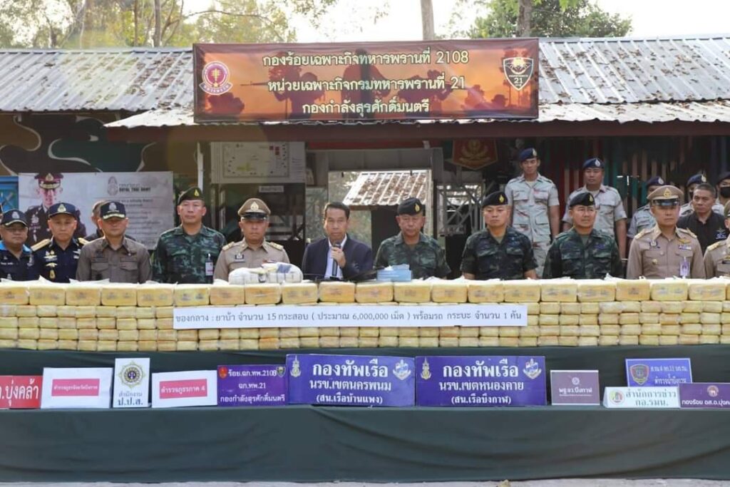 เมื่อวันที่ 26 กุมภาพันธ์ เวลา 17.00 น. ที่ฐานปฏิบัติการกองร้อยเฉพาะกิจทหารพรานที่ 2108 หน่วยเฉพาะกิจทหารพรานที่ 21 อำเภอบุ่งคล้า จังหวัดบึงกาฬ นายสุทิน คลังแสง รัฐมนตรีว่าการกระทรวงกลาโหม เป็นประธานแถลงข่าว การตรวจยึดยาบ้าล็อตใหญ่ จำนวน 15 กระสอบ (6,000,000 เม็ด) และรถยนต์กระบะ ยี่ห้อ โตโยต้า รีโว้ สีขาว จำนวน 1 คัน โดยมี พลโท อดุลย์ บุญธรรมเจริญ แม่ทัพภาคที่ 2 , พลโท บุญสิน พาดกลาง แม่ทัพน้อยที่ 2, พลตรี นรธิป โพยนอก ผู้บัญชาการกองกำลังสุรศักดิ์มนตรี, พล.ต.ท.สรายุทธ สงวนโภคัย ผู้บัญชาการตำรวจภูธรภาค 4 , นายจุมพฏ วรรณฉัตรสิริ ผู้ว่าราชการจังหวัดบึงกาฬ , พลตำรวจตรี วิญญู อำนวยสมบัติ ,นายภิญโญ โฆสิต ผอ.ปปส.ภ.4 , พันเอก วีระวัฒน์ เท้าพิมพ์ เสนาธิการกองกำลังสุรศักดิ์มนตรี, พันเอก สุภัทร ชูตินันทน์ รองผู้บังคับการกองบังคับการควบคุมที่ 2 กองกำลังสุรศักดิ์มนตรี , นาวาเอกนัฐพัฒน์ ซื่อมงคล รองผู้บัญชาการหน่วยเรือรักษาความสงบเรียบร้อยตามลำแม่น้ำโขง , พันเอก สุริวัชร์ อัครพรเดชาพงษ์ ผู้บังคับการกรมทหารพรานที่ 21/ผู้บังคับหน่วยเฉพาะกิจกรมทหารพรานที่ 21 และตำรวจ สภ.บุ่งคล้า นรข.สถานีเรือบ้านแพง ตชด.244 และหน่วยงานความมั่นคงในพื้นที่จังหวัดบึงกาฬ ให้การต้อนรับและร่วมแถลงข่าวในครั้งนี้